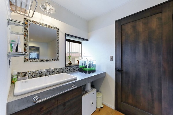 《事例⑤:アイアンブラックがアクセントの、こだわりが詰まった造作洗面》