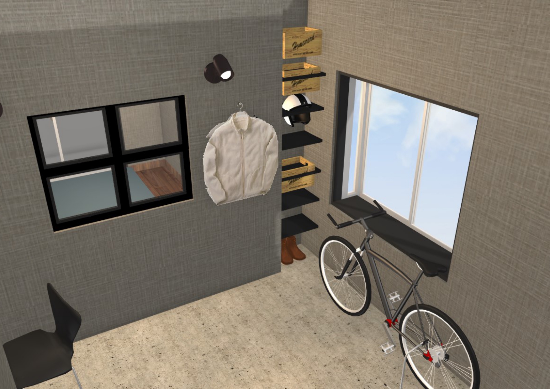 こちらは玄関から続いている広い土間収納の3Dパースです