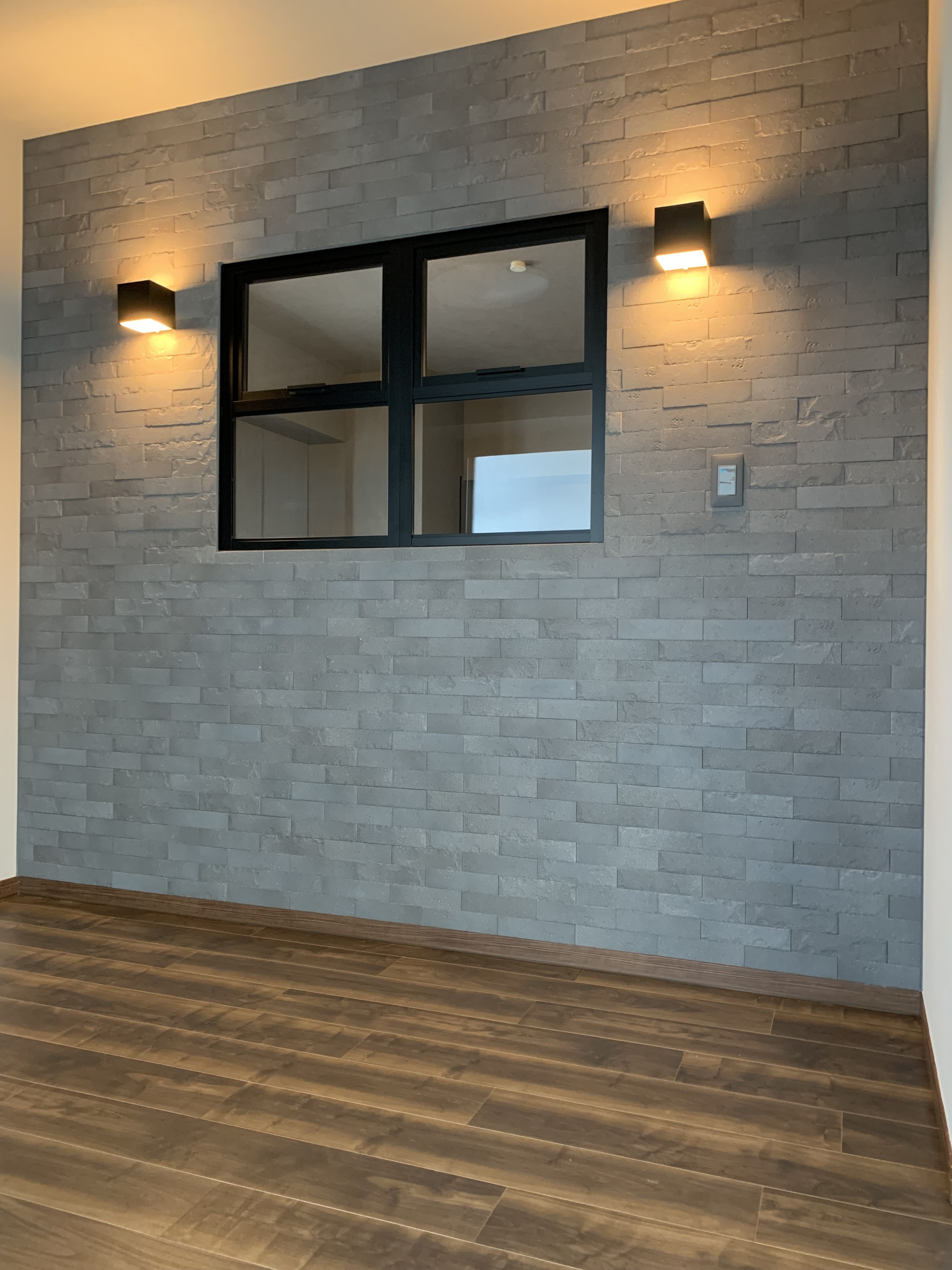 洋室の壁一面にはアクセントでカッコいいエコカラットを施工しました。