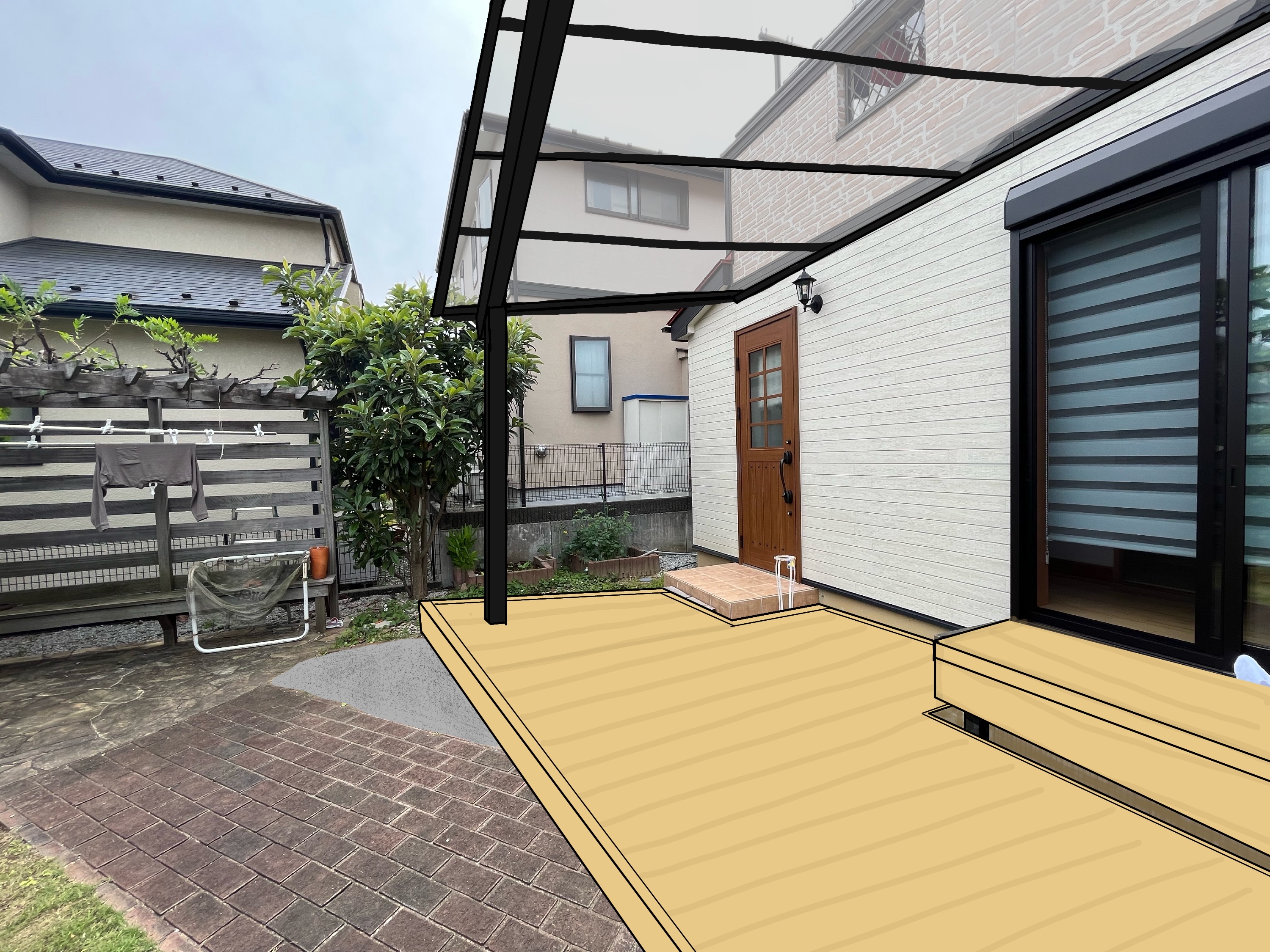 ウッドデッキとテラスも実際の写真にイラストを合成してみました