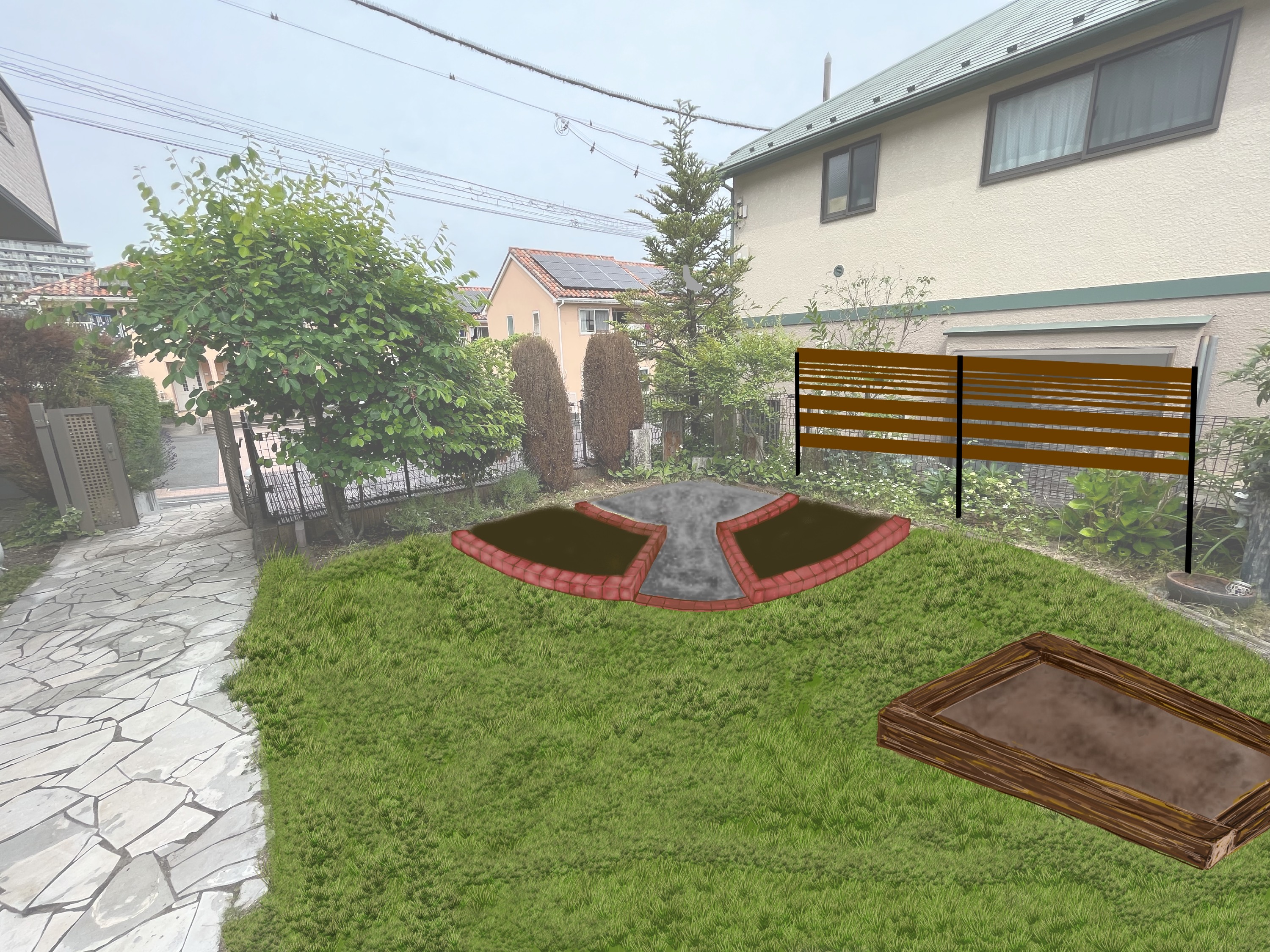 今回は実際のお庭の写真に花壇や砂場を合成してみました