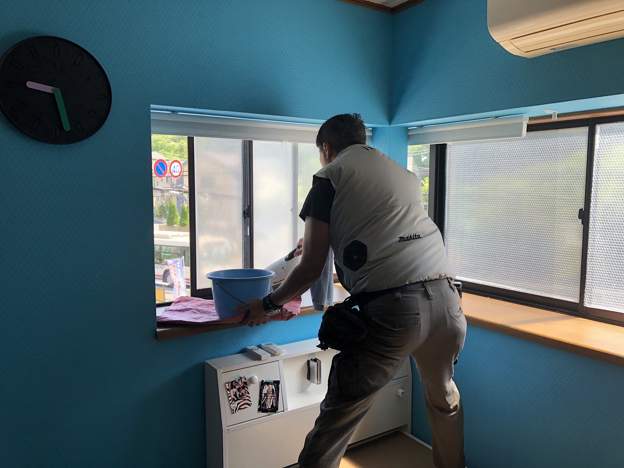 丁寧に窓廻りの掃除からスタートします