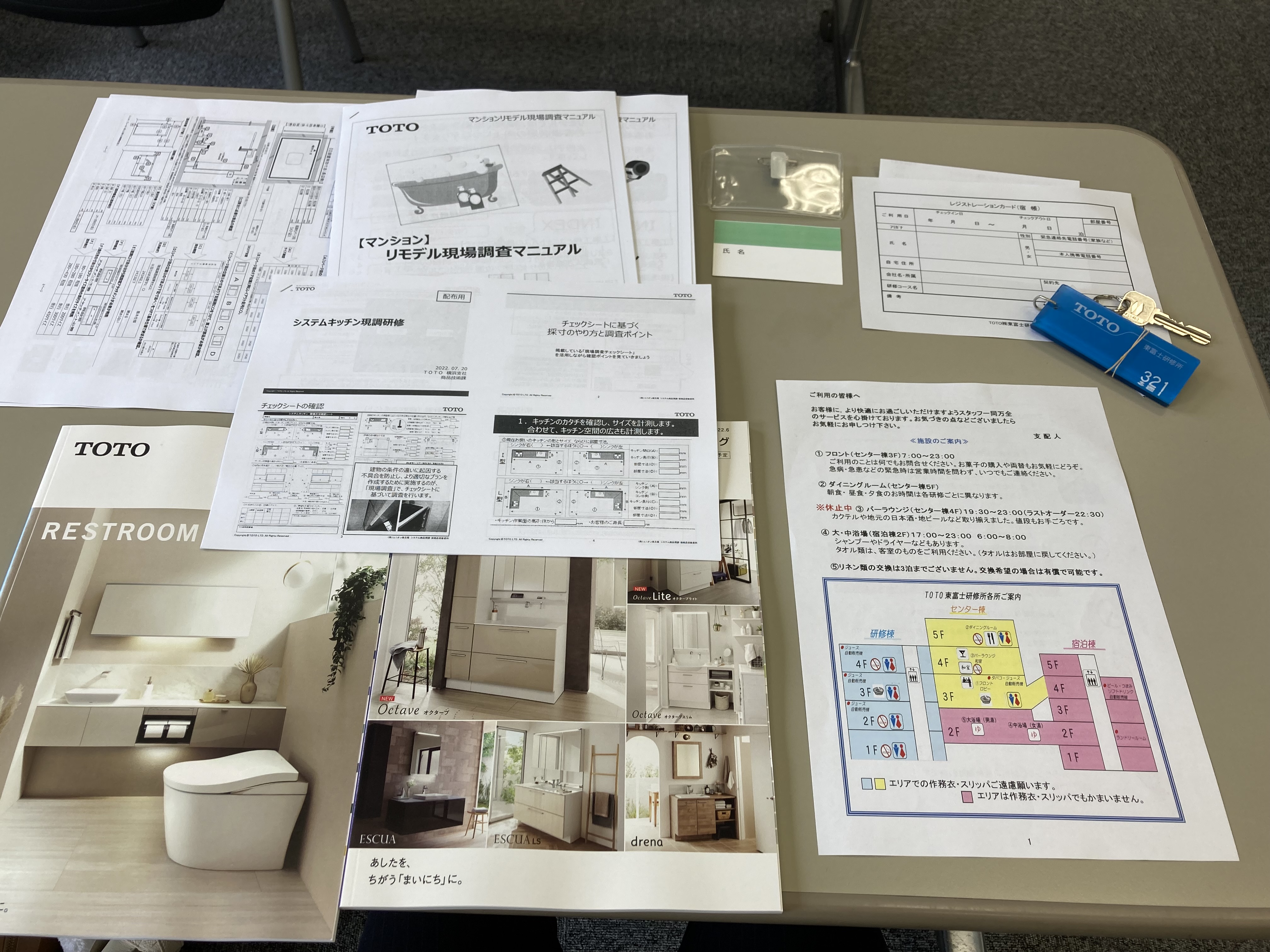 商品知識、浴室やキッチンの現地調査の仕方等を学ぶ為