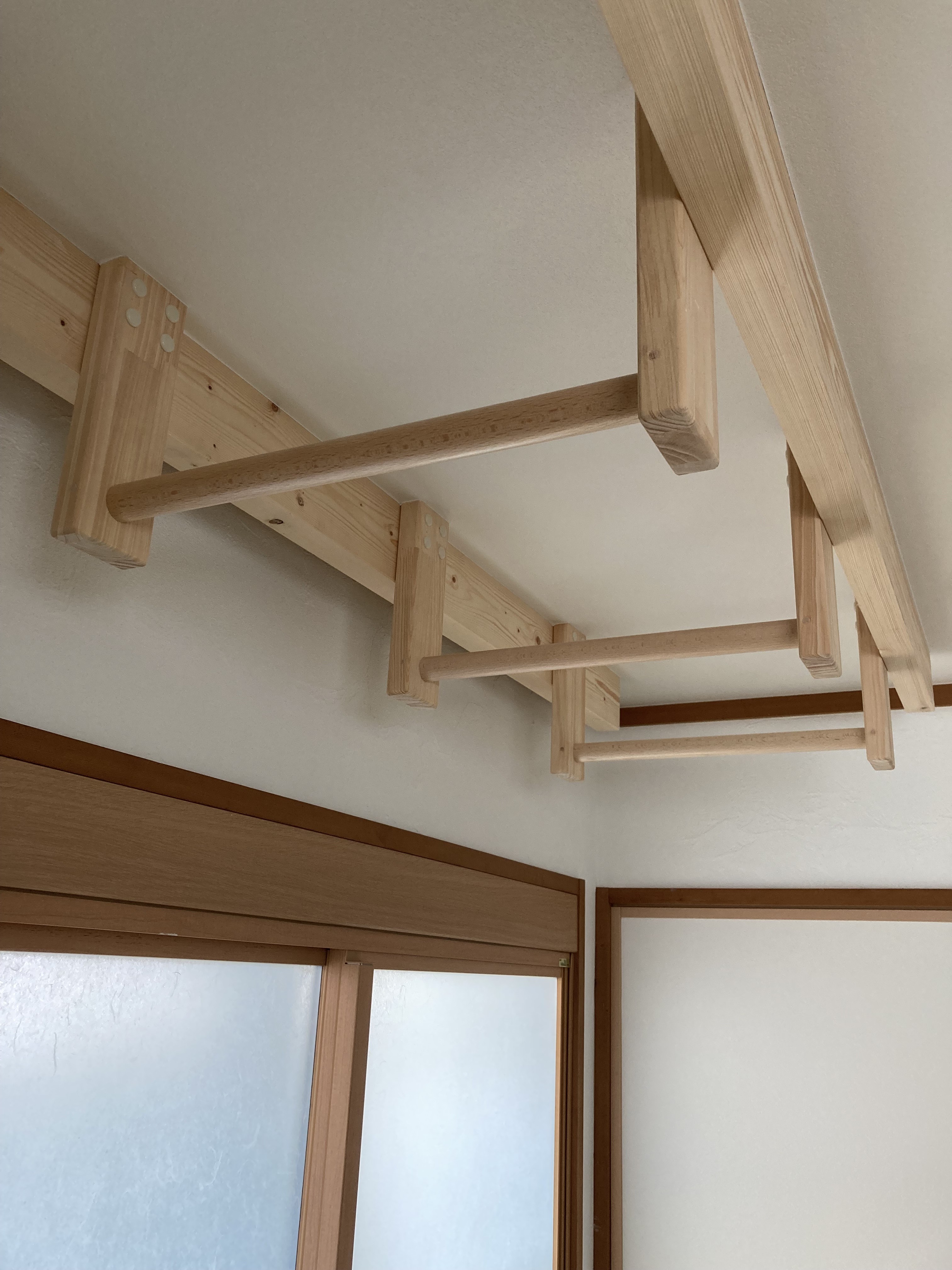 脚立からうんていに飛びついて、逆さ腹筋をしたり
