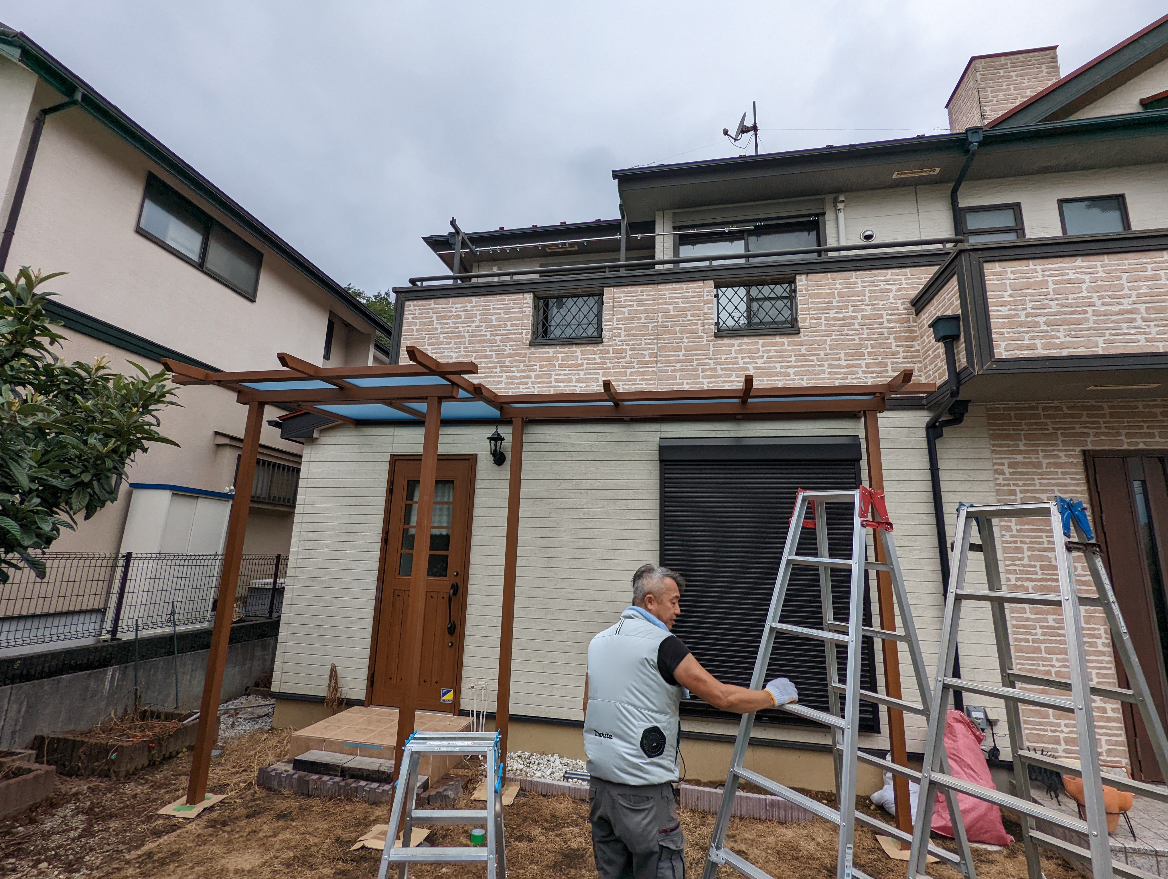 腕利きのエクステリア職人Kさんが、現場に合わせて部材を加工しながら組み立てて行きます。