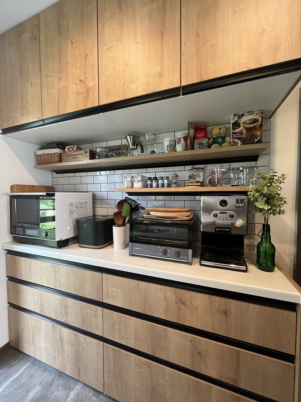 キッチンは寸法や高さなど細かな点までこだわった棚に、家電や素敵な小物がぴったりと納まっていて、見ていてとても嬉しくなりました♪