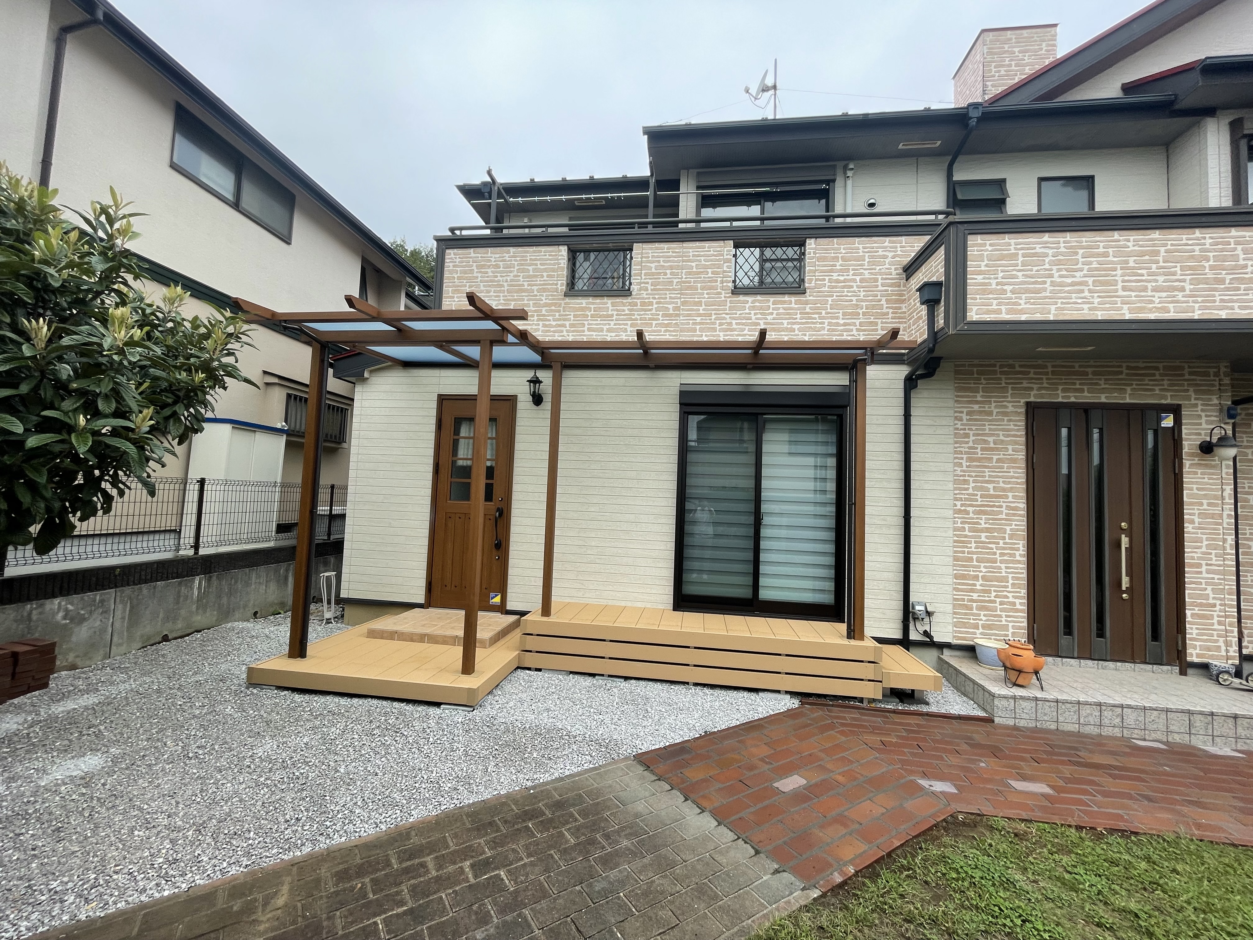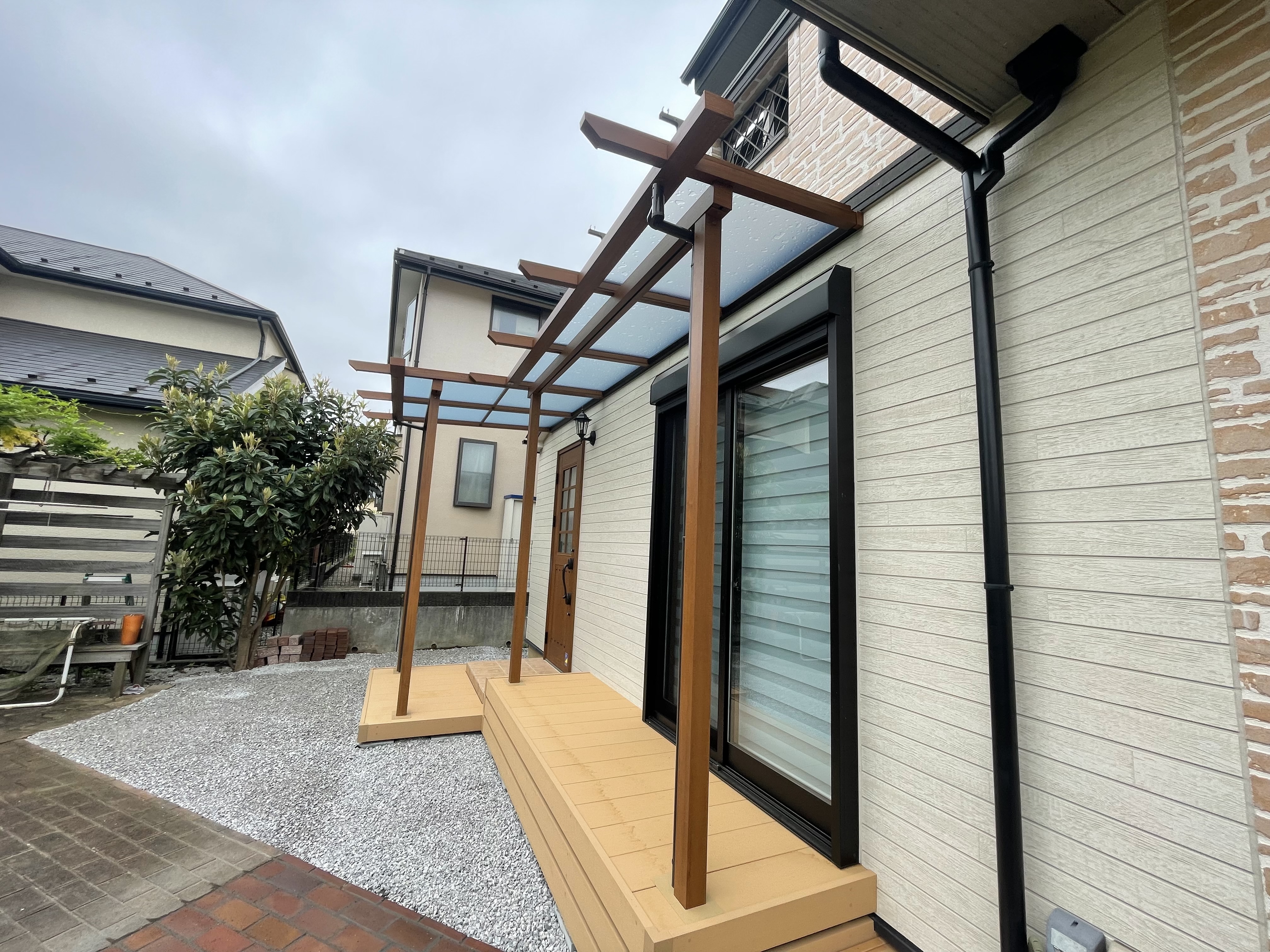 八王子市K様邸のウッドデッキとテラス屋根は綺麗に仕上がりました。