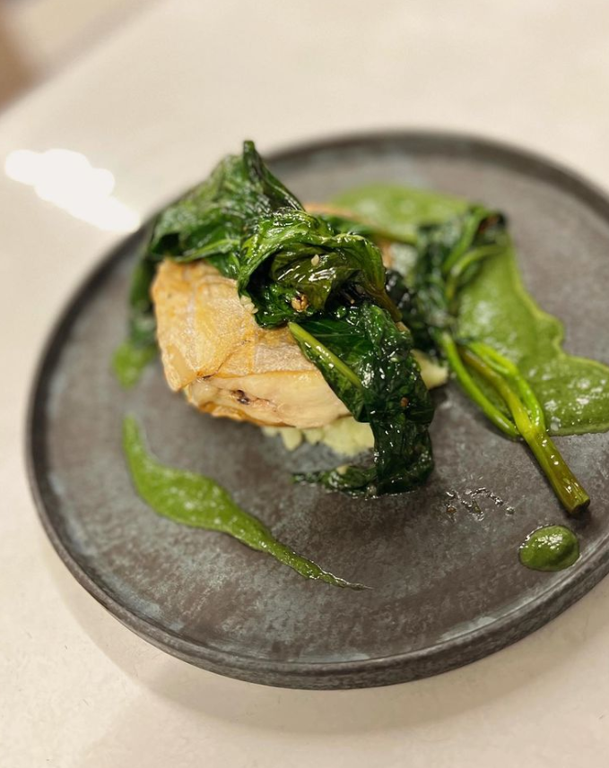 『太刀魚のムニエル~空心菜のソースとソテーを添えて~』