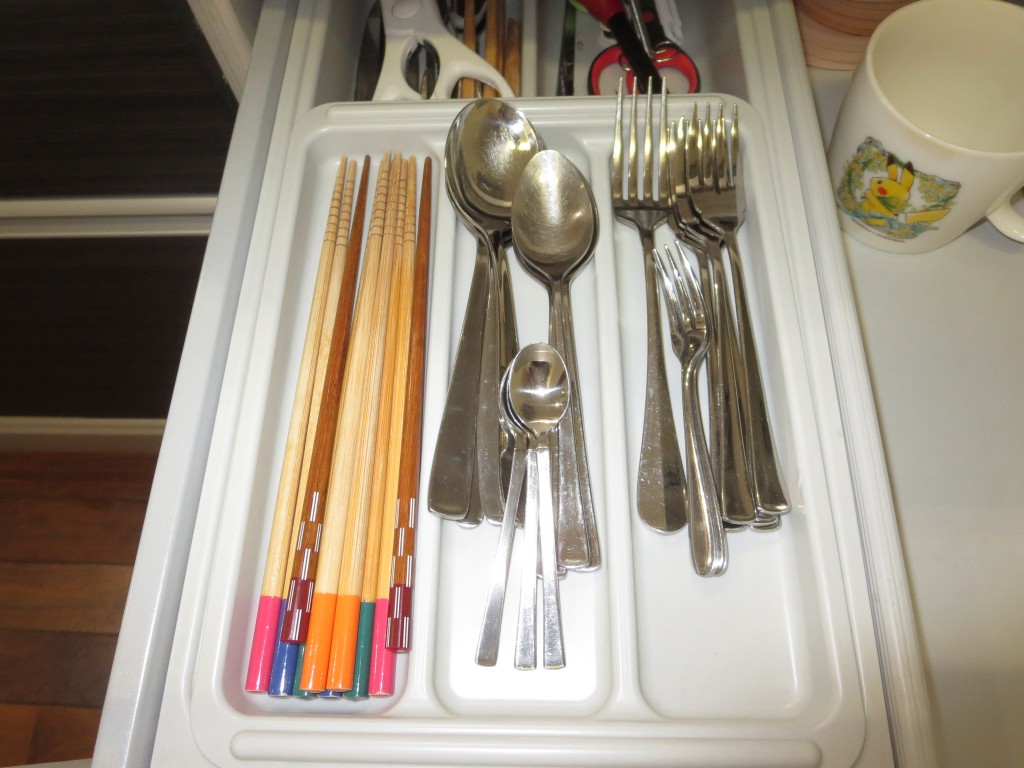 キッチンの引き出しにはカトラリー(シルバー)やお箸もたくさんあります。