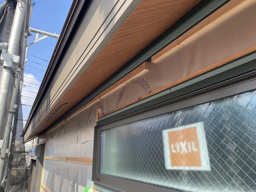 軒天には木の羽目板に見えるサイディング(軒天用)を貼っています。