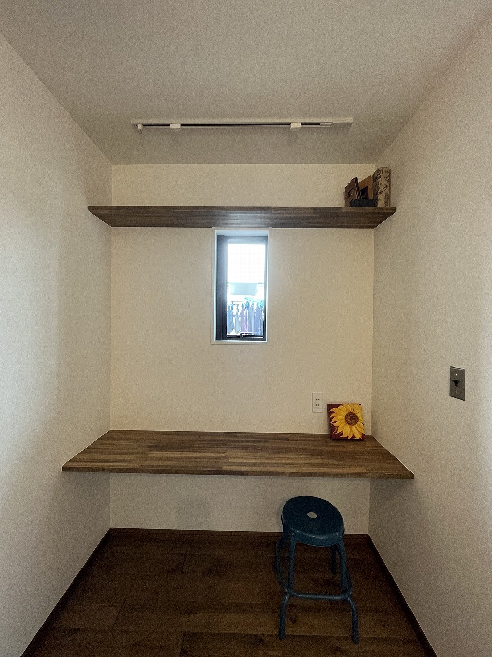 1階の玄関から続く吹抜けをつぶして、2階のホールに床を作り、ご家族がみんなで使えるワークスペースに![]()