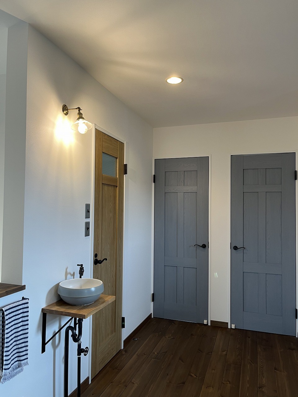 2階のホールにはトイレの前に洗面台が付いていましたが、こちらをコンパクトなかわいい手洗いに変更しました![]()