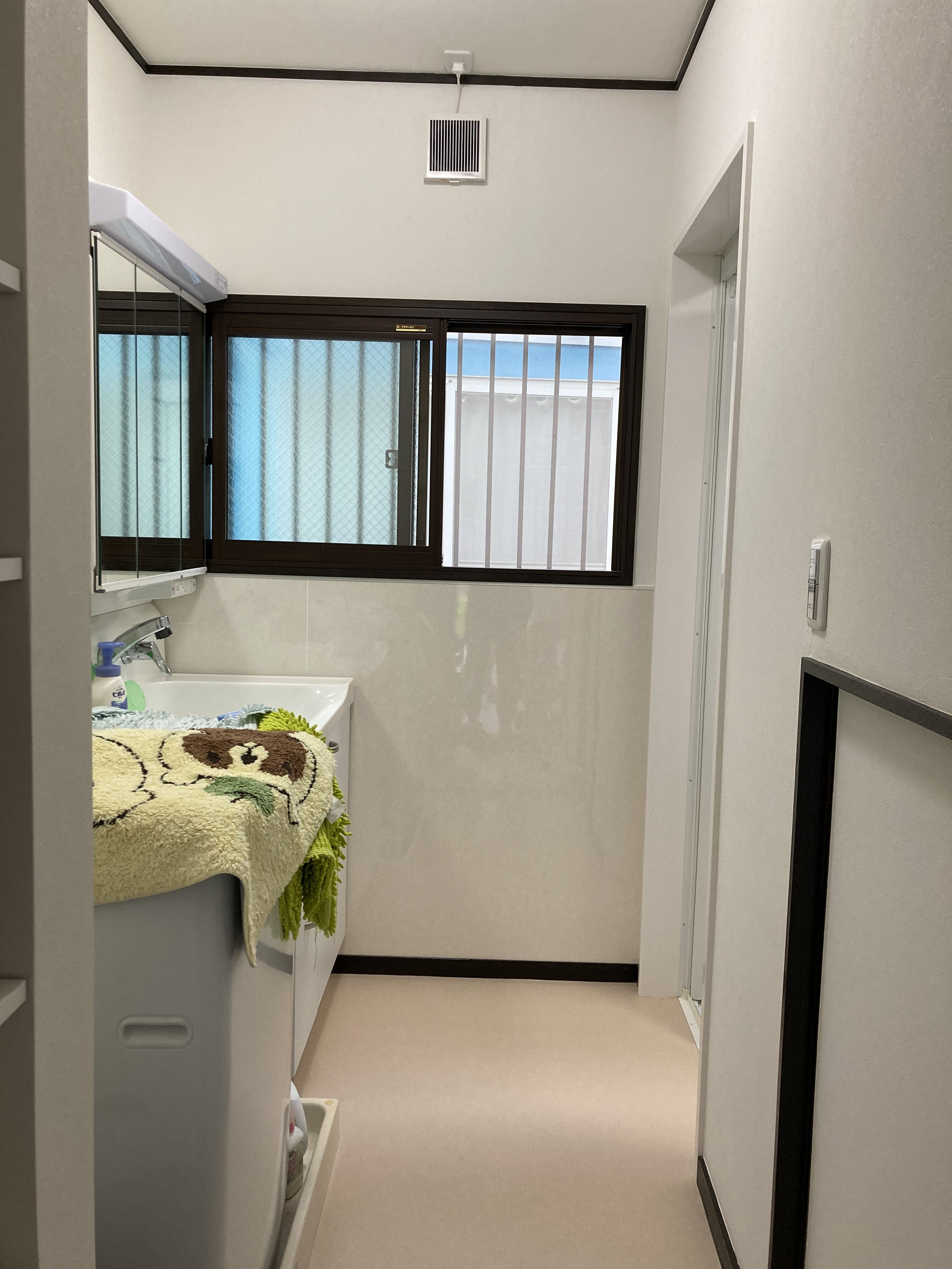 洗面台横の壁はキッチンパネルを貼って、お水に強い仕様に![]()