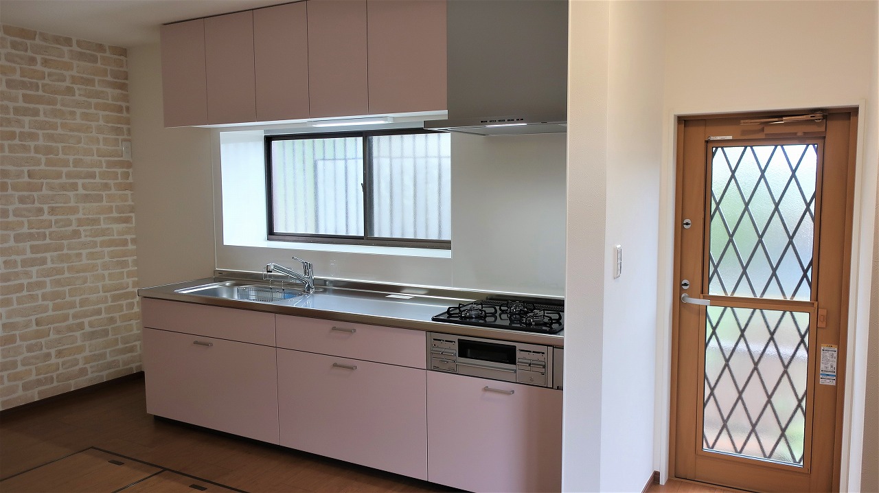 淡いピンクのキッチンはとってもかわいくて、奥様も私もお気に入りです![]()