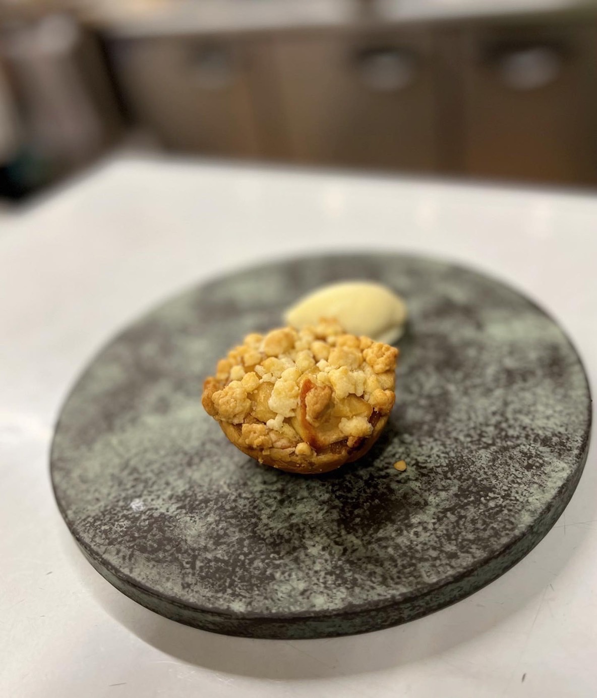 それをクランブルと紅茶のダマンド(クリーム)を使用したアップルパイにしました🍎