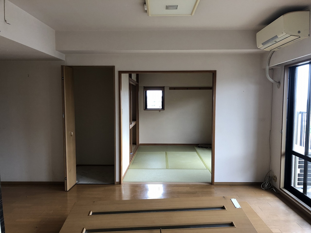 隣接する和室は洋室化し、収納や間仕切り壁を撤去してリビングダイニングを広げました。