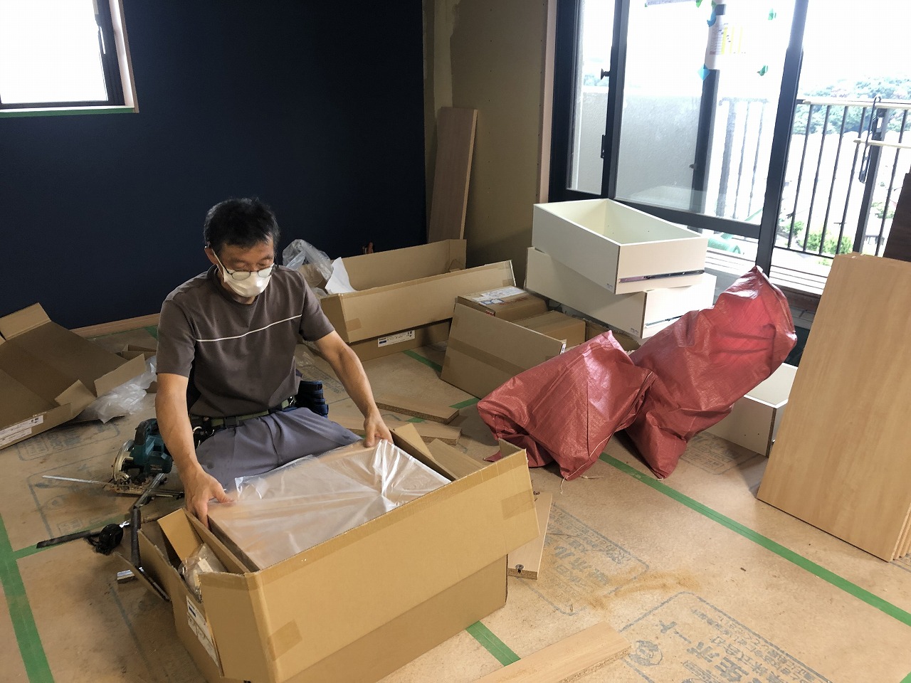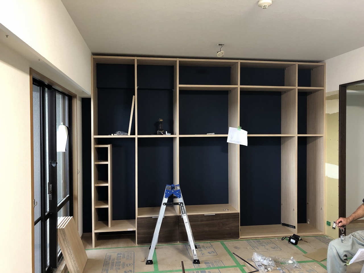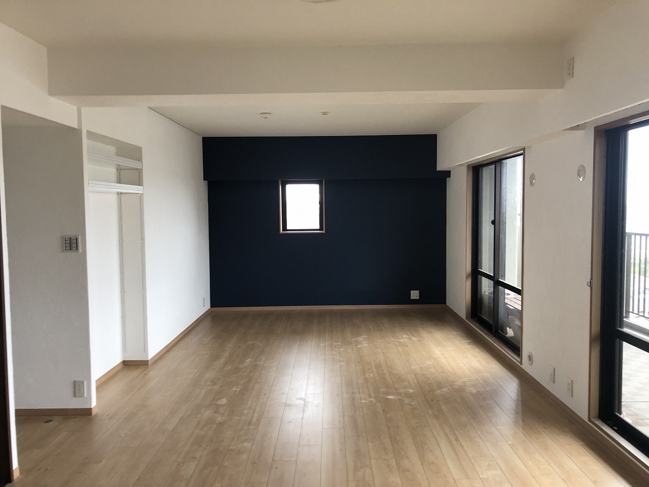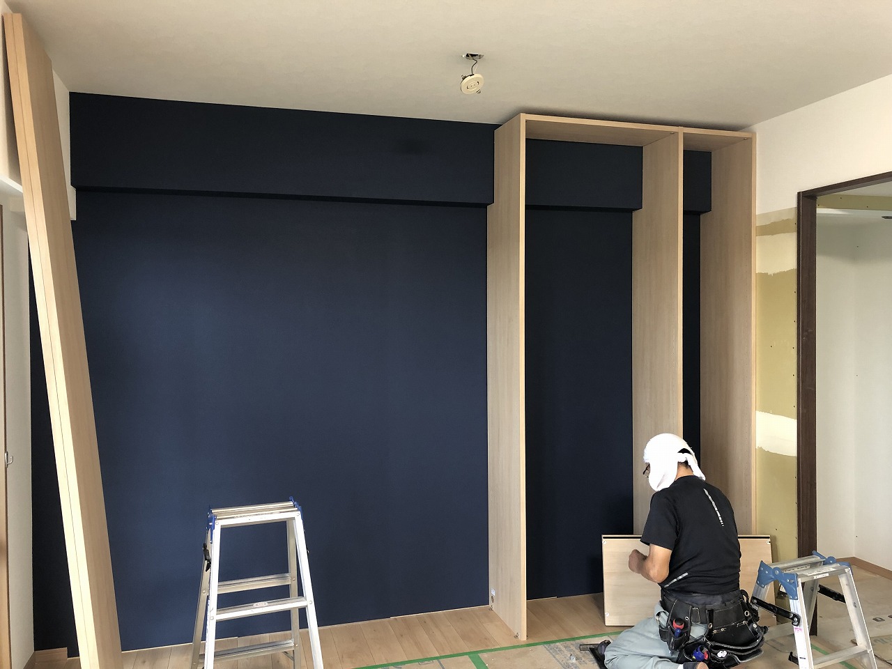 背面はネイビーブルーのアクセントクロスを貼り引き締まった印象になりましたね![]()