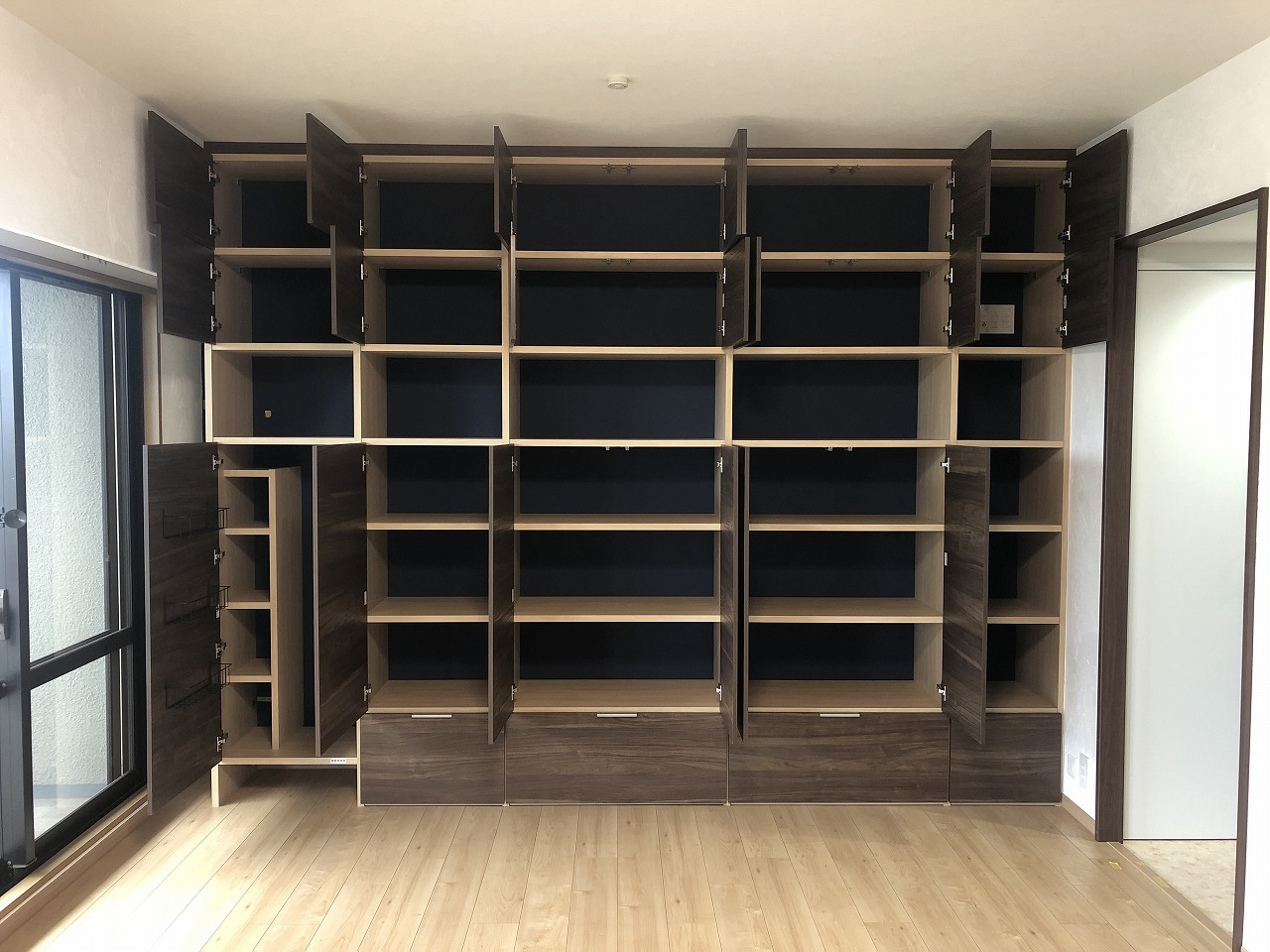 T様は背板がないタイプで、フレームは『メープル柄』、扉は『ウォルナット柄』を選ばれました。