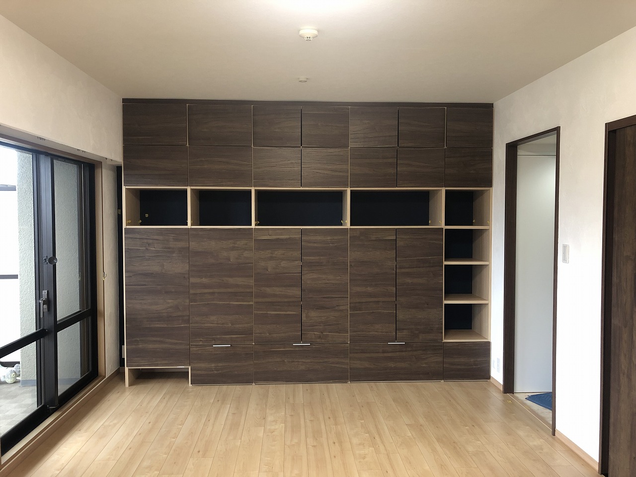 リビングから利用できる収納スペースも新たに設けてT様のお悩みを解消することができました![]()