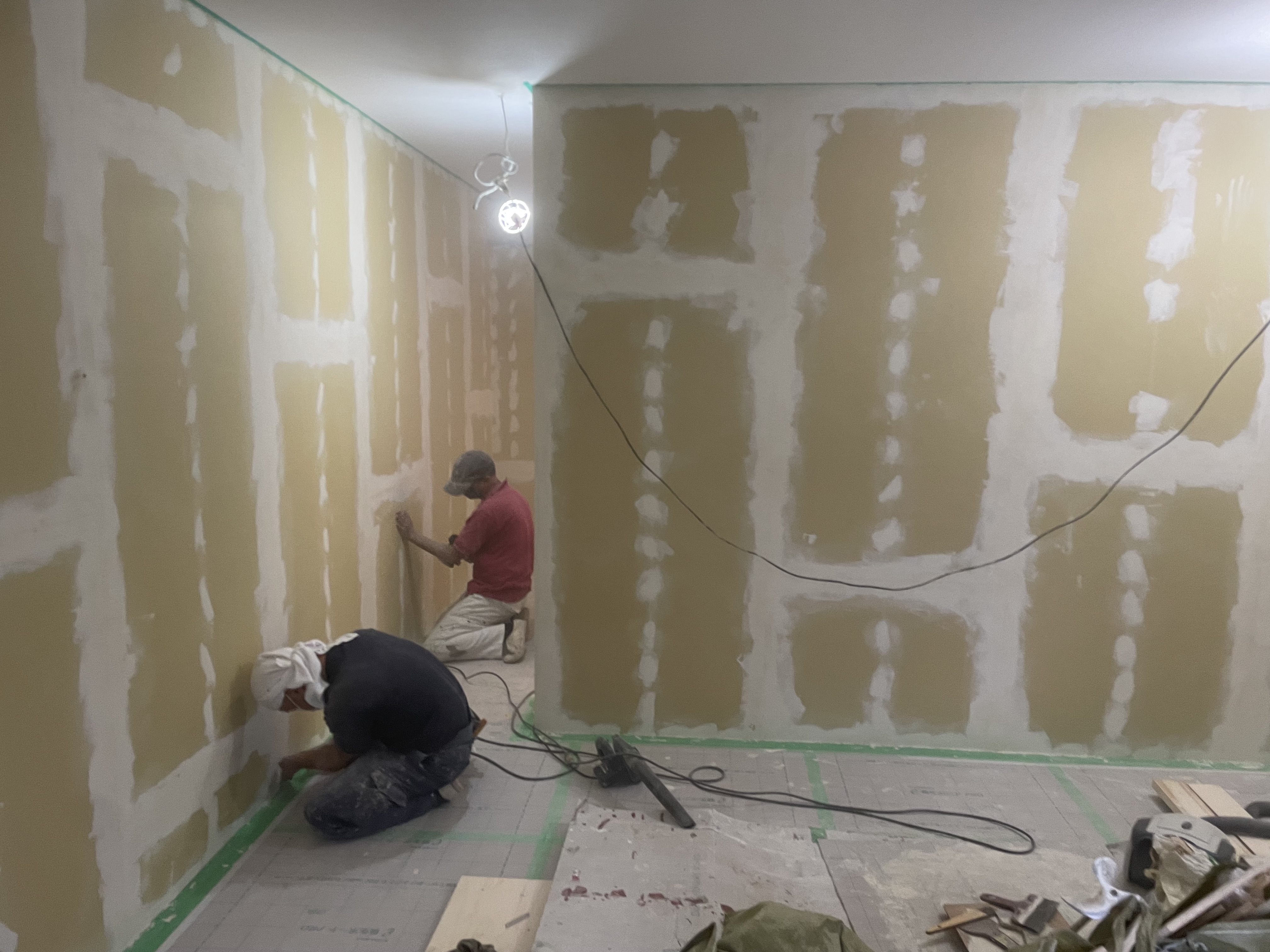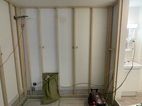 元々あった壁の内側に下地を組み新しい壁を作っていきます。