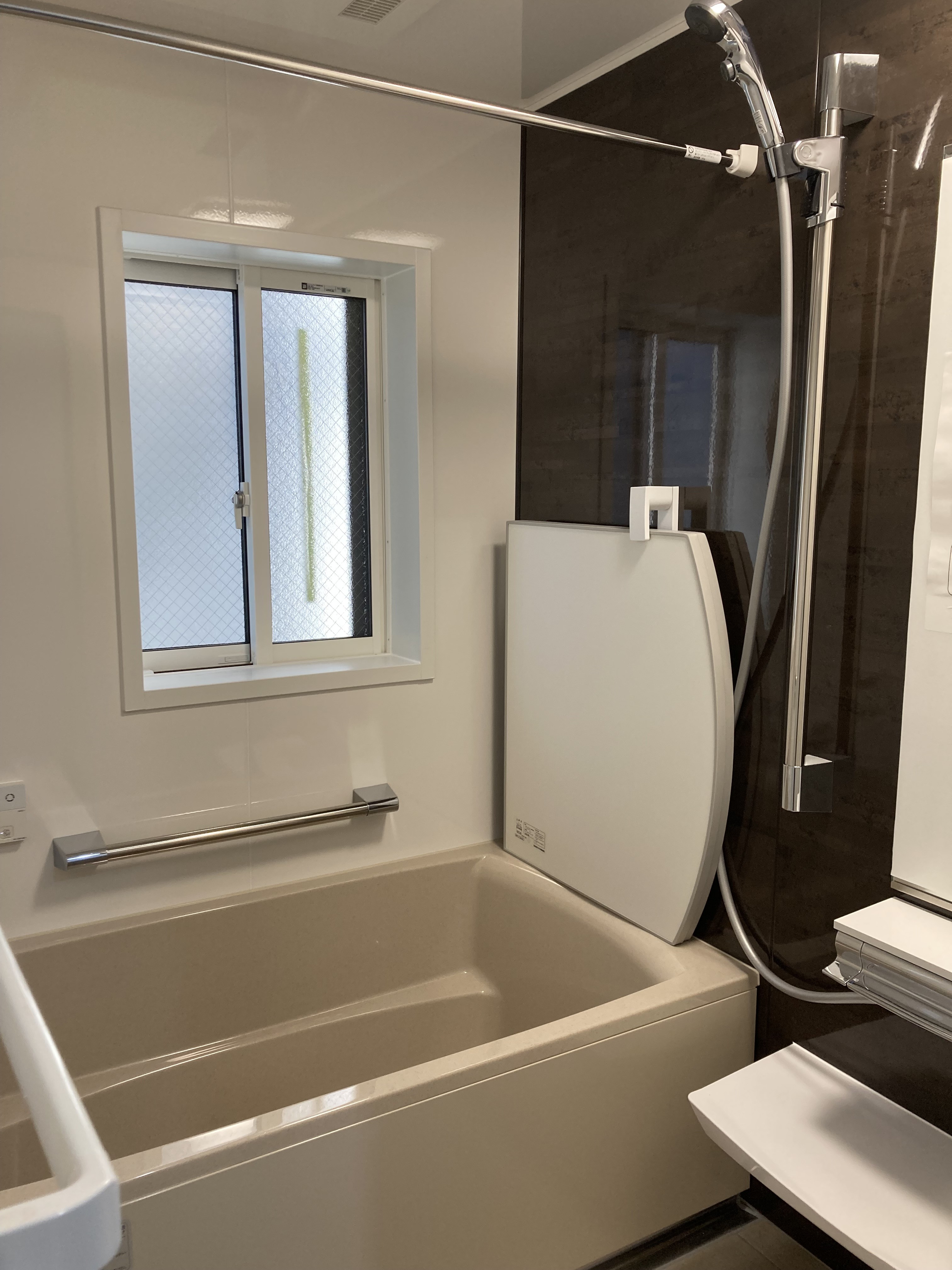 温かみのあるお色でまとめたシックなお風呂になりました![]()