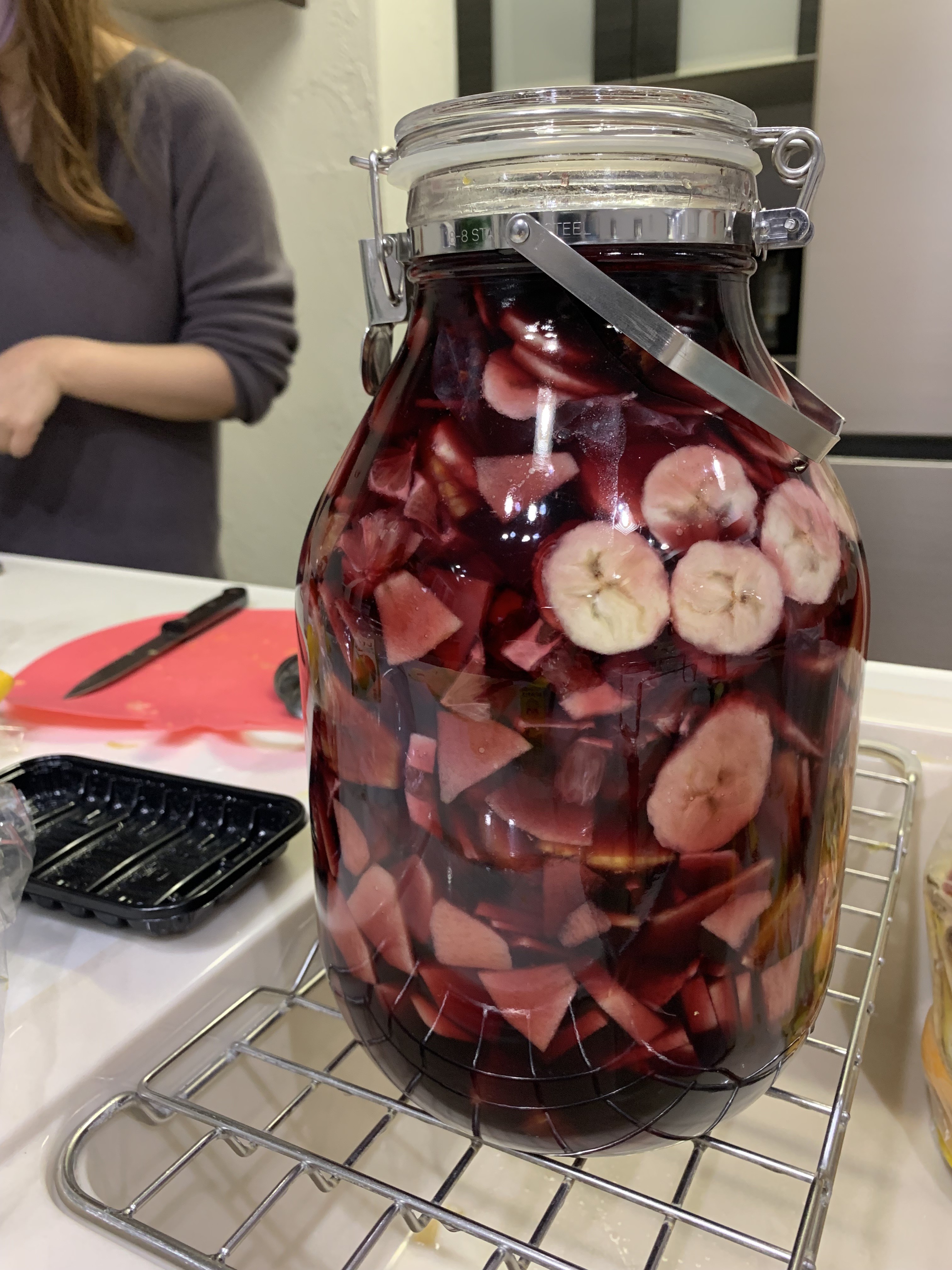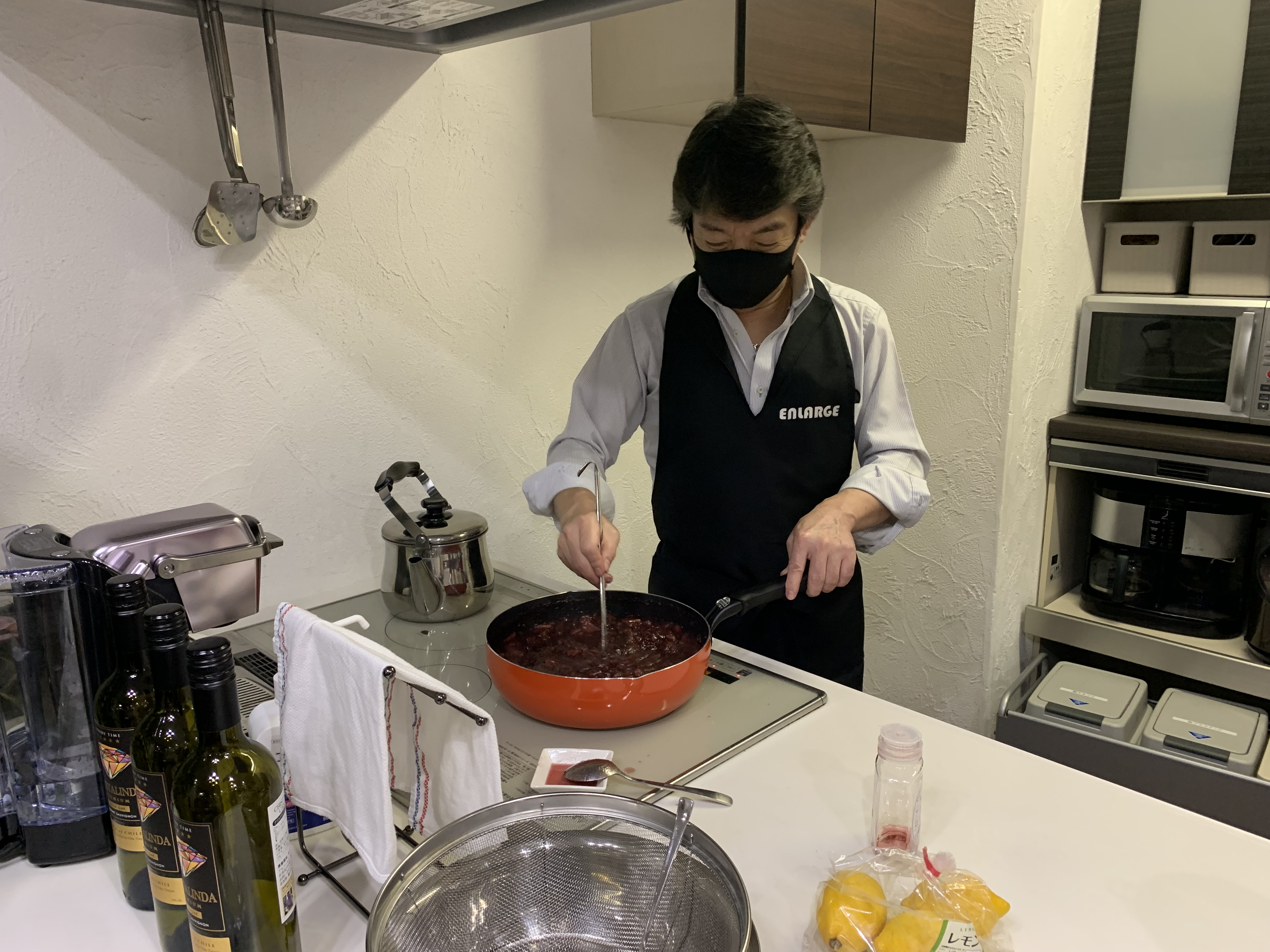1週間ワインに漬け込んだフルーツに砂糖を加えてじっくりと煮込むのですが、これが実は根気のいる作業![]()