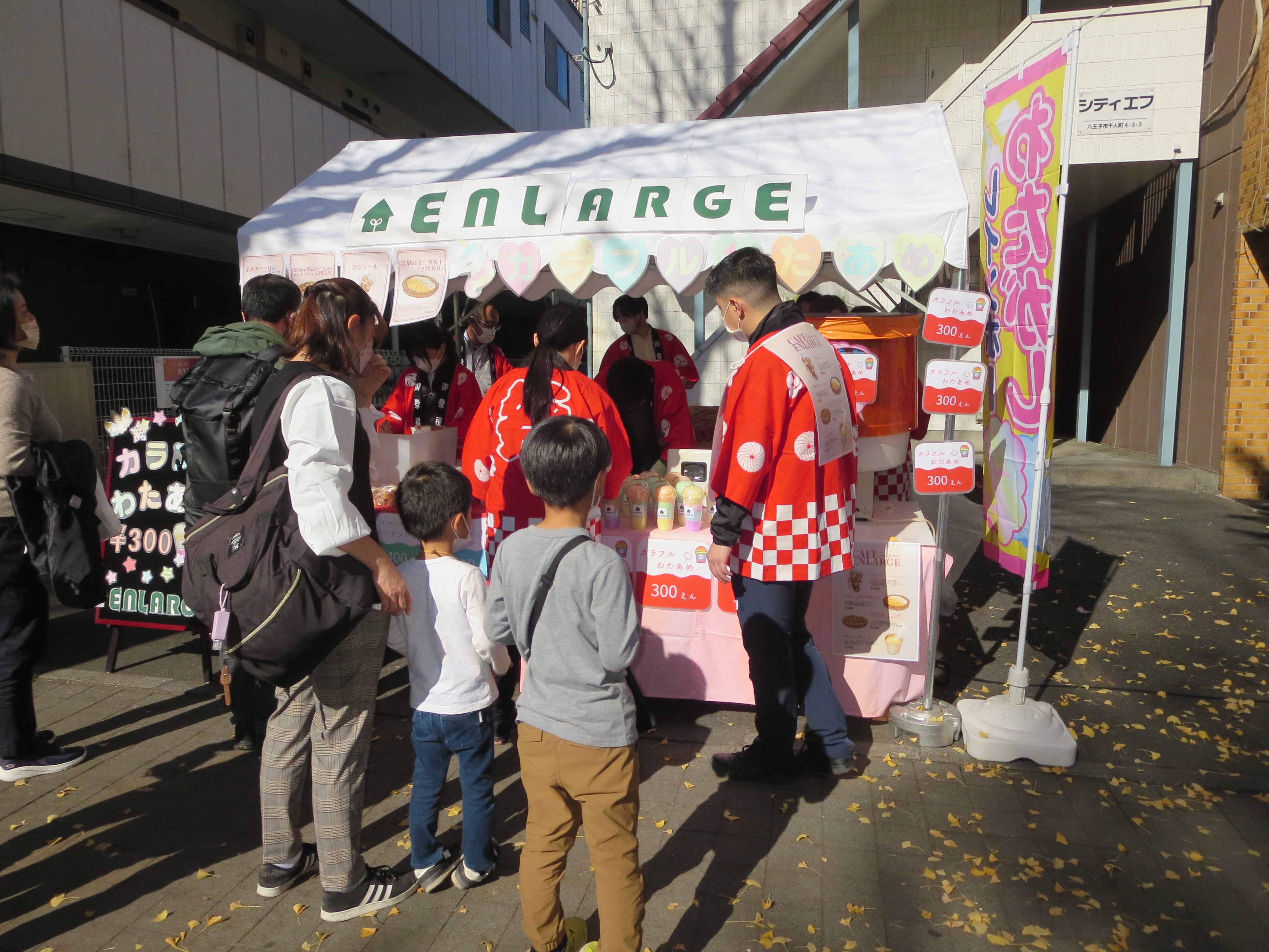 今年はカフェ💛エンラージの駐車場に特設テントを設置して“カラフルわたあめ”を販売しています![]()