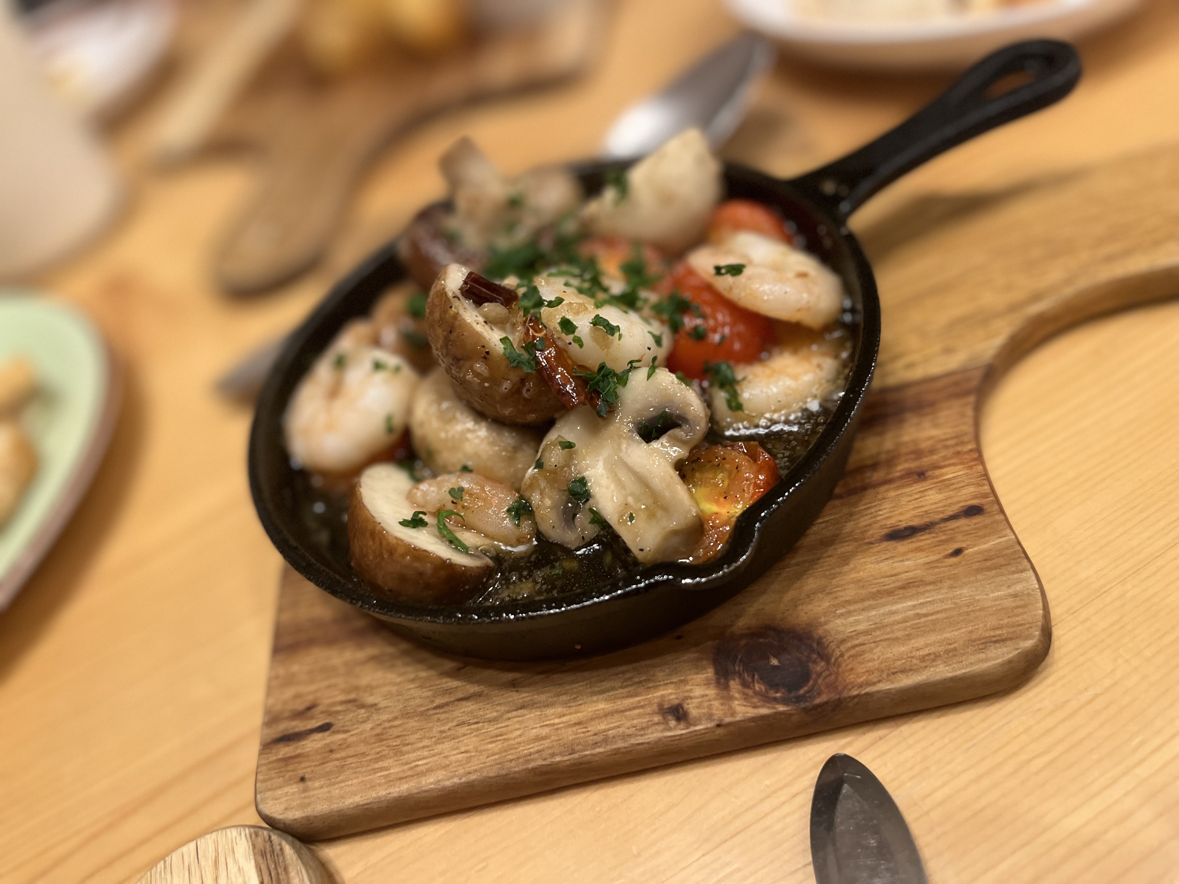 海老がたっぷりと入ったアヒージョも、熱々でこの季節におすすめです![]()