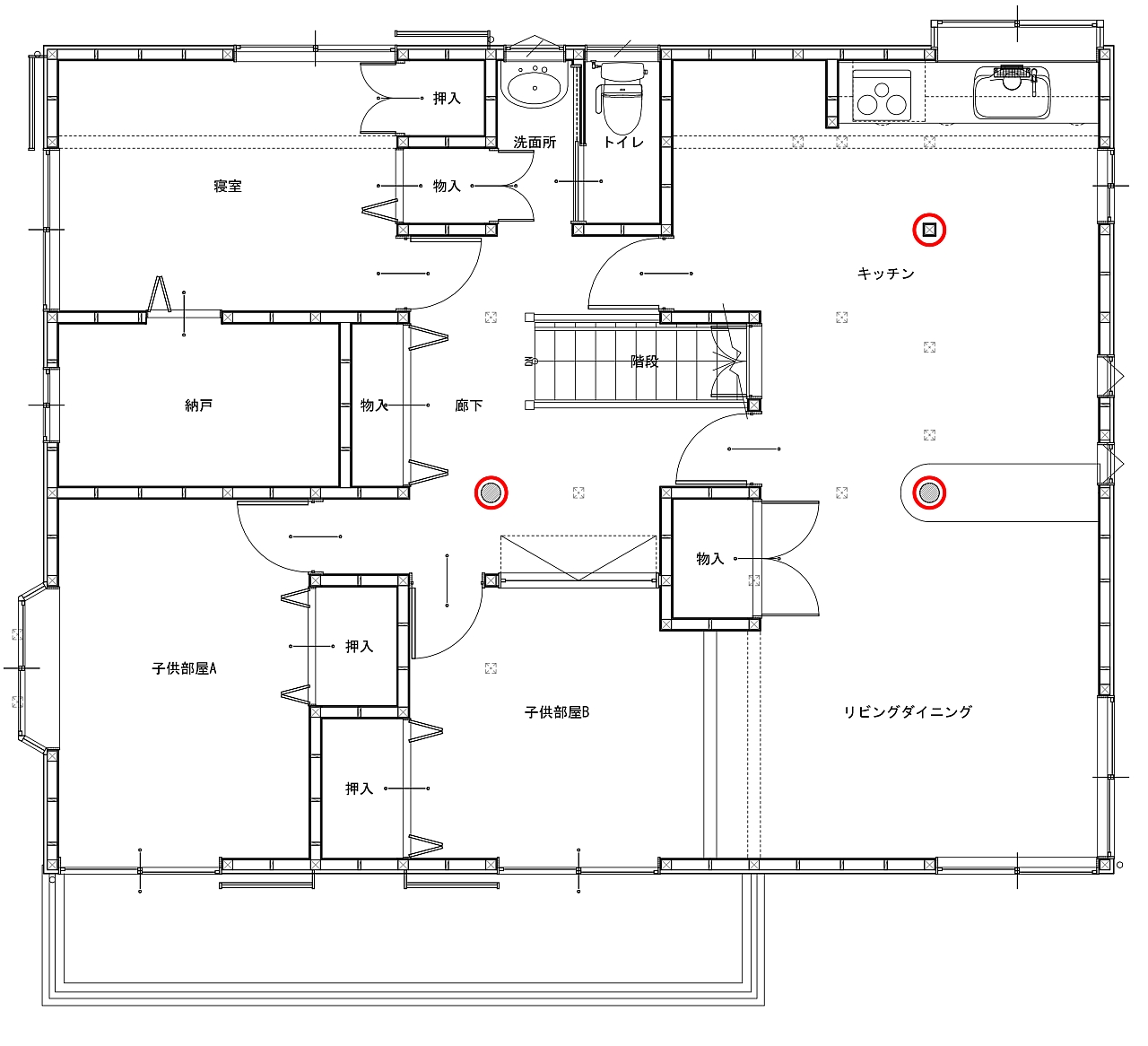 これらの「3本の柱」は、「構造上重要な柱」であることは間違いなく、今回のプランに大きな影響を与えます。