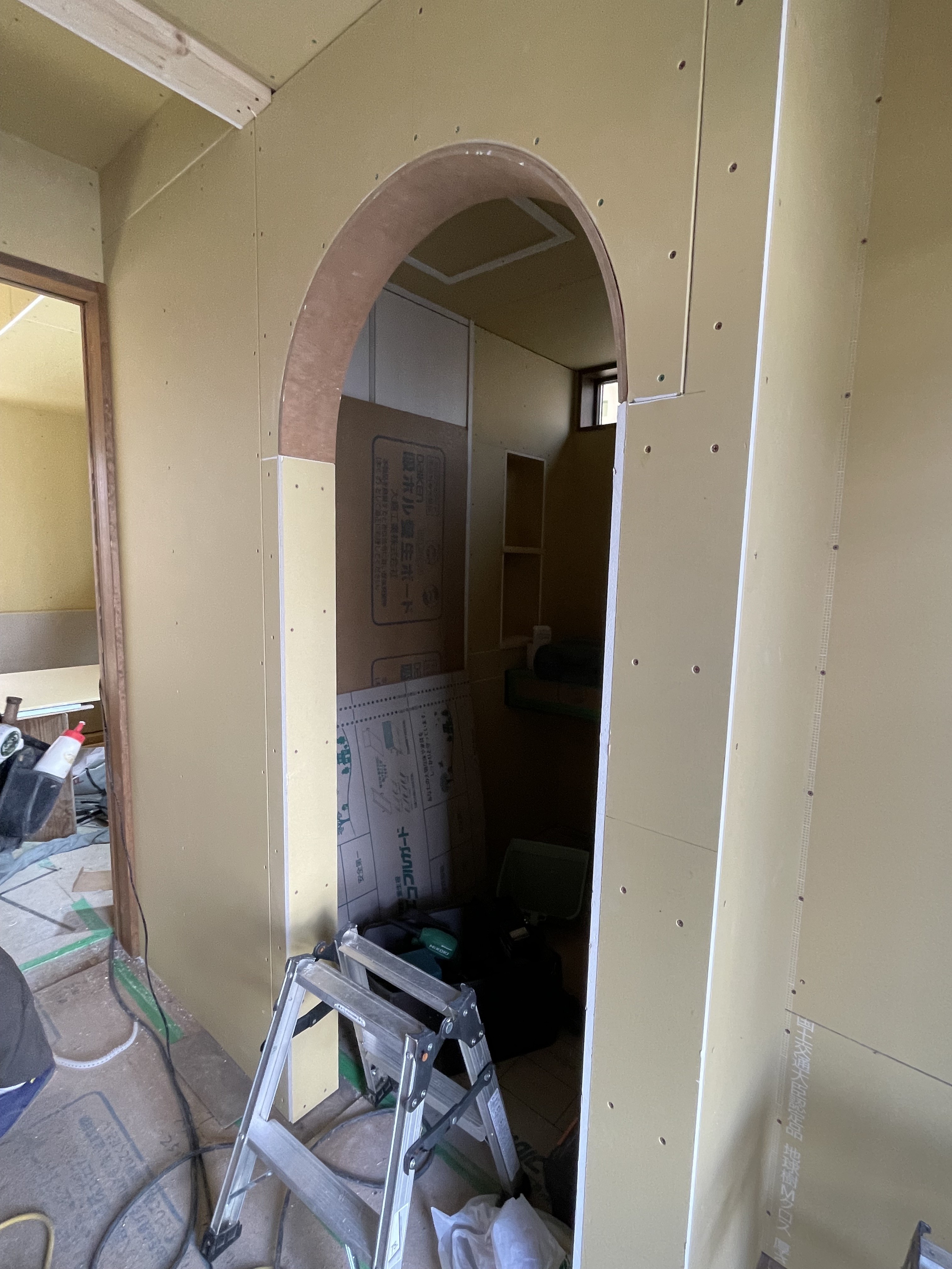 外壁も「ディバネート」という低汚染の塗り壁なので、中も外も左官屋さんが大活躍の現場です![]()