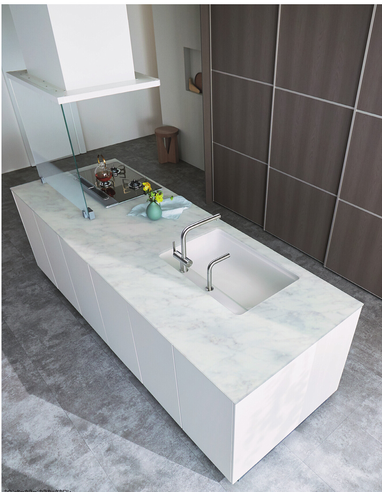 輝くような白色をベースにグレーやベージュ色の上品な石目調が施されており、明るくしたいけれど汚れが目立たせたくない、という人にもピッタリです