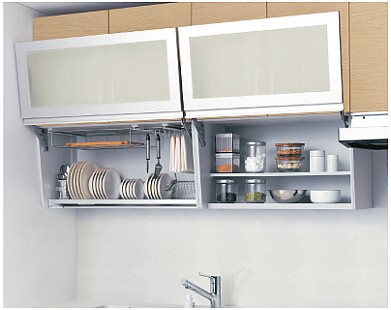 今回は『ドレスアップウォール』という跳ね上げ式の扉の中に、洗った食器を置けるようなキャビネットを設置しました。