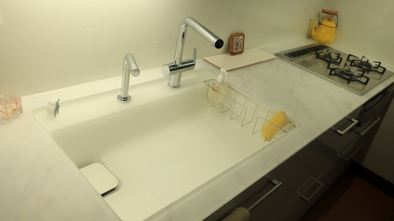 カウンターとの継ぎ目がないので汚れもふき取りやすくて快適です