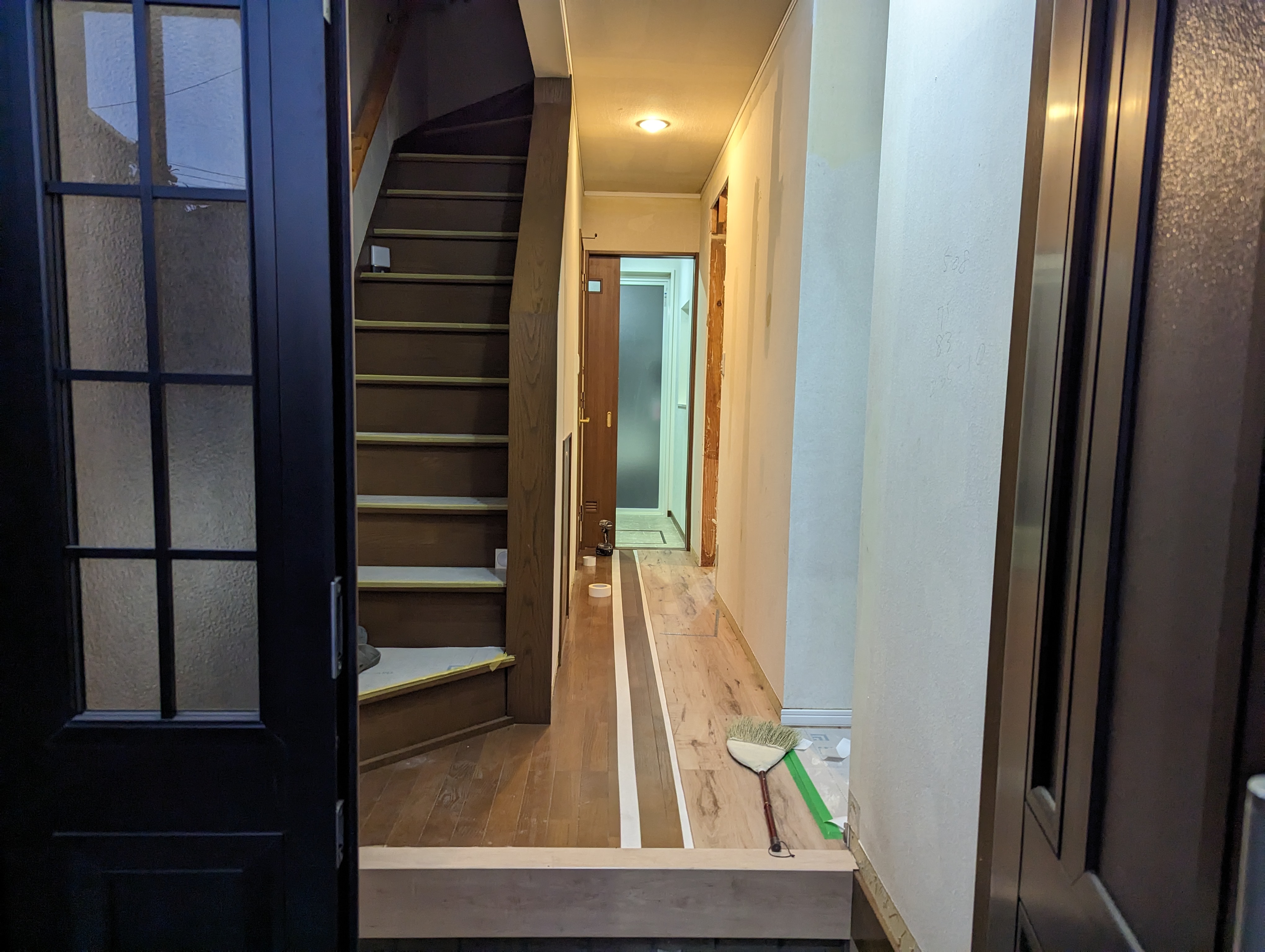 荷物を動かしつつ、床を貼ったところは養生をしながら