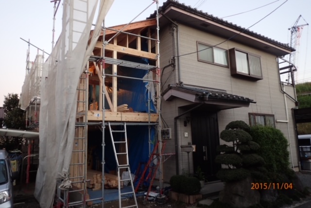 こちらはまた別のお客様のお写真ですが、増築施工中の様子です![]()