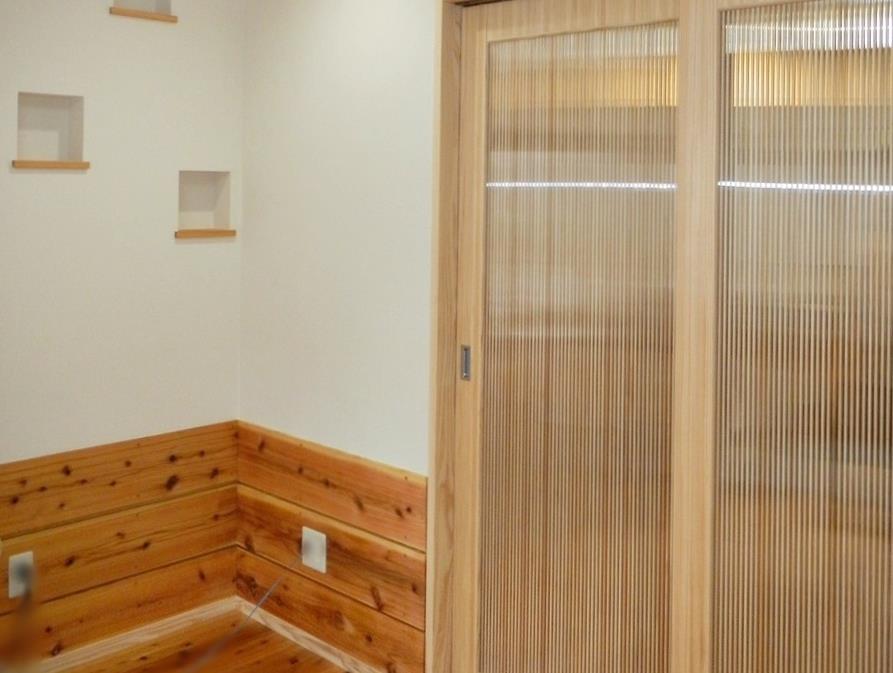 国産杉の建具『イマガワさん』の繊細な木スリットが美しい 『新きざみ』を採用
