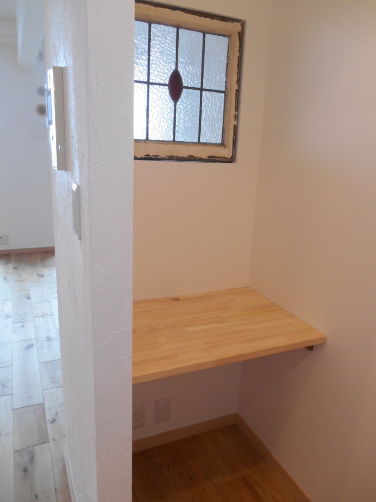 床のオーク材はエイジング加工をしてオールド感を演出![]()