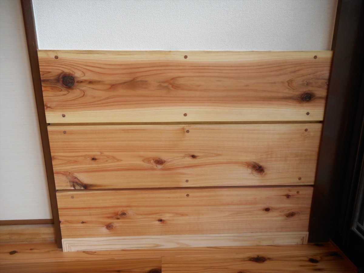 杉材を固定しているビス穴も同じ杉材からダボを作り