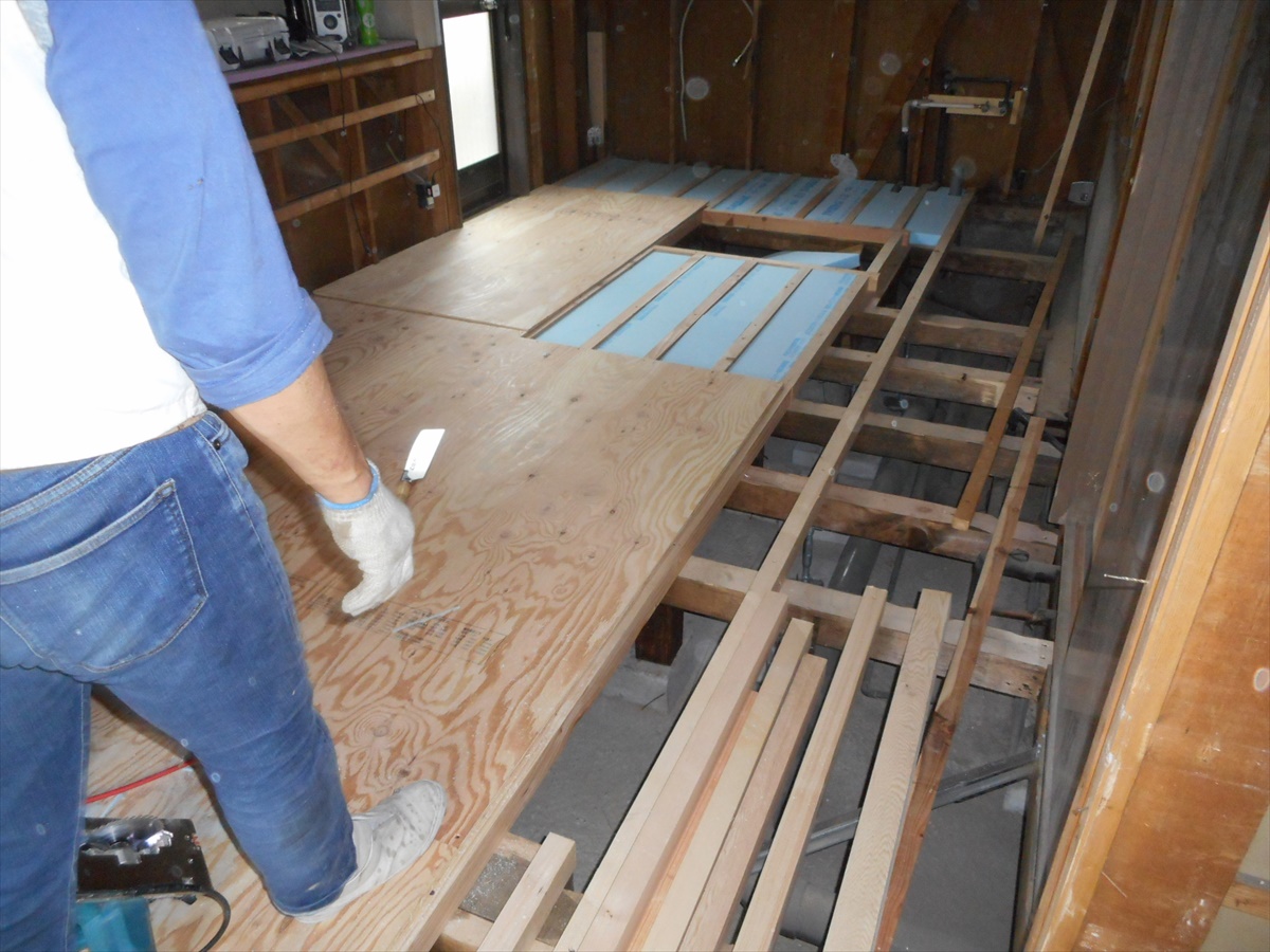 床の傾斜を調整したり、断熱材もしっかり入れています![]()