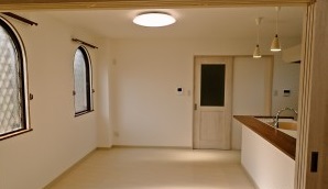 既存の半円窓はアクセントとしてLDKに取り込みました![]()