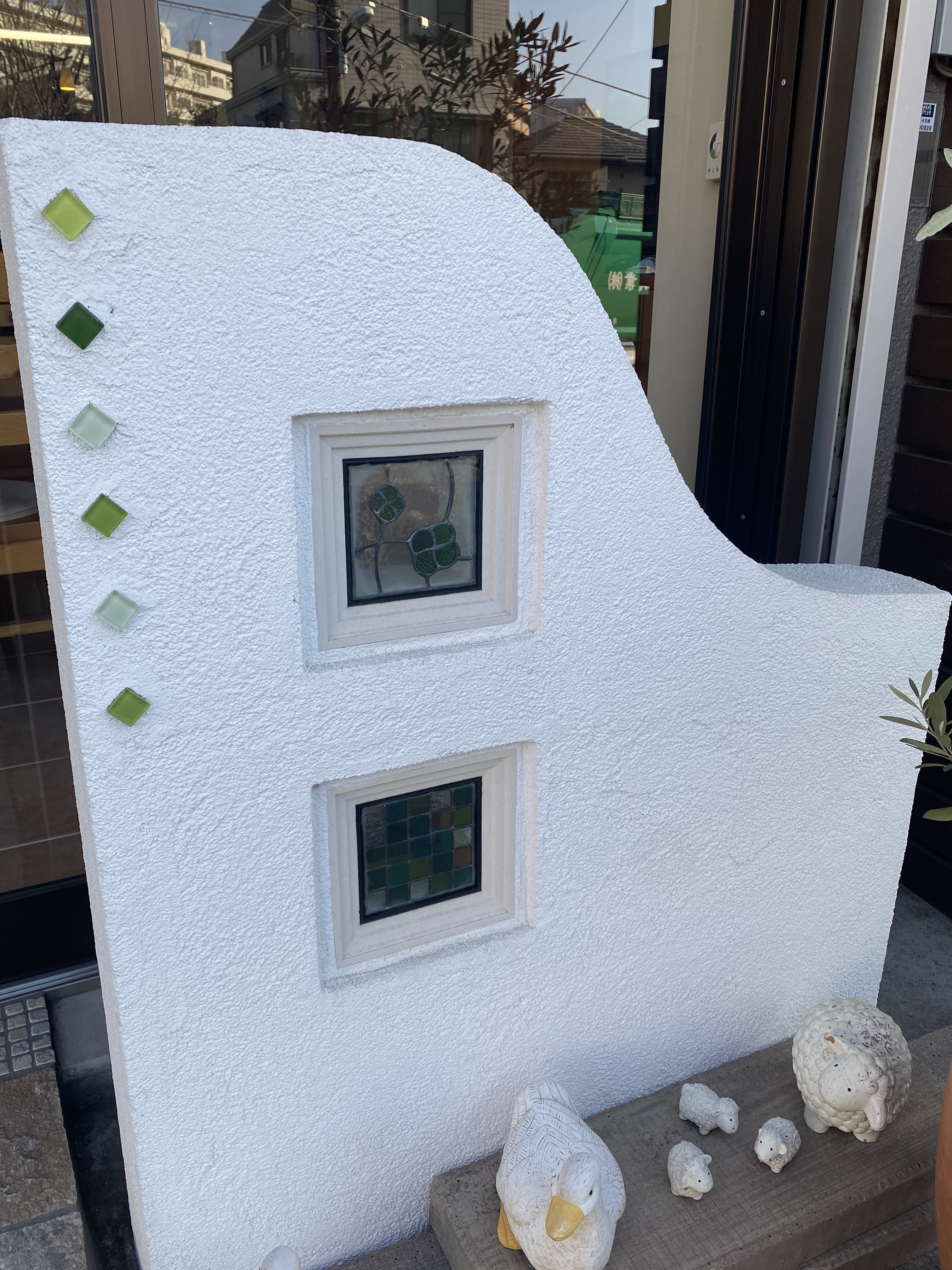 正面左側の花壇にはスイス漆喰「カルクウォール」を塗って仕上げています![]()