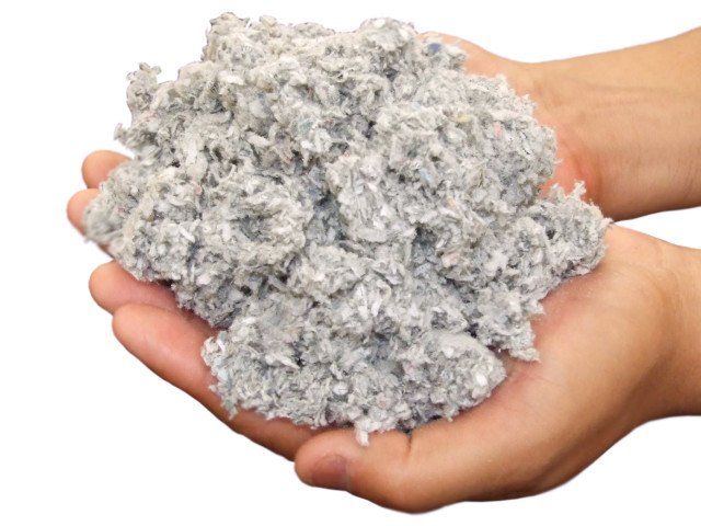 古紙を再生して難燃処理(ホウ酸処理)をほどこしているので