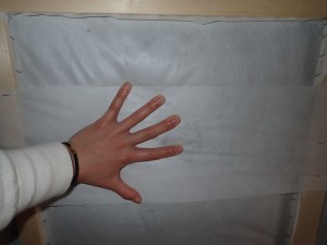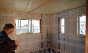 先日は壁の断熱材『セルロースファイバー』の施工が終わりました。