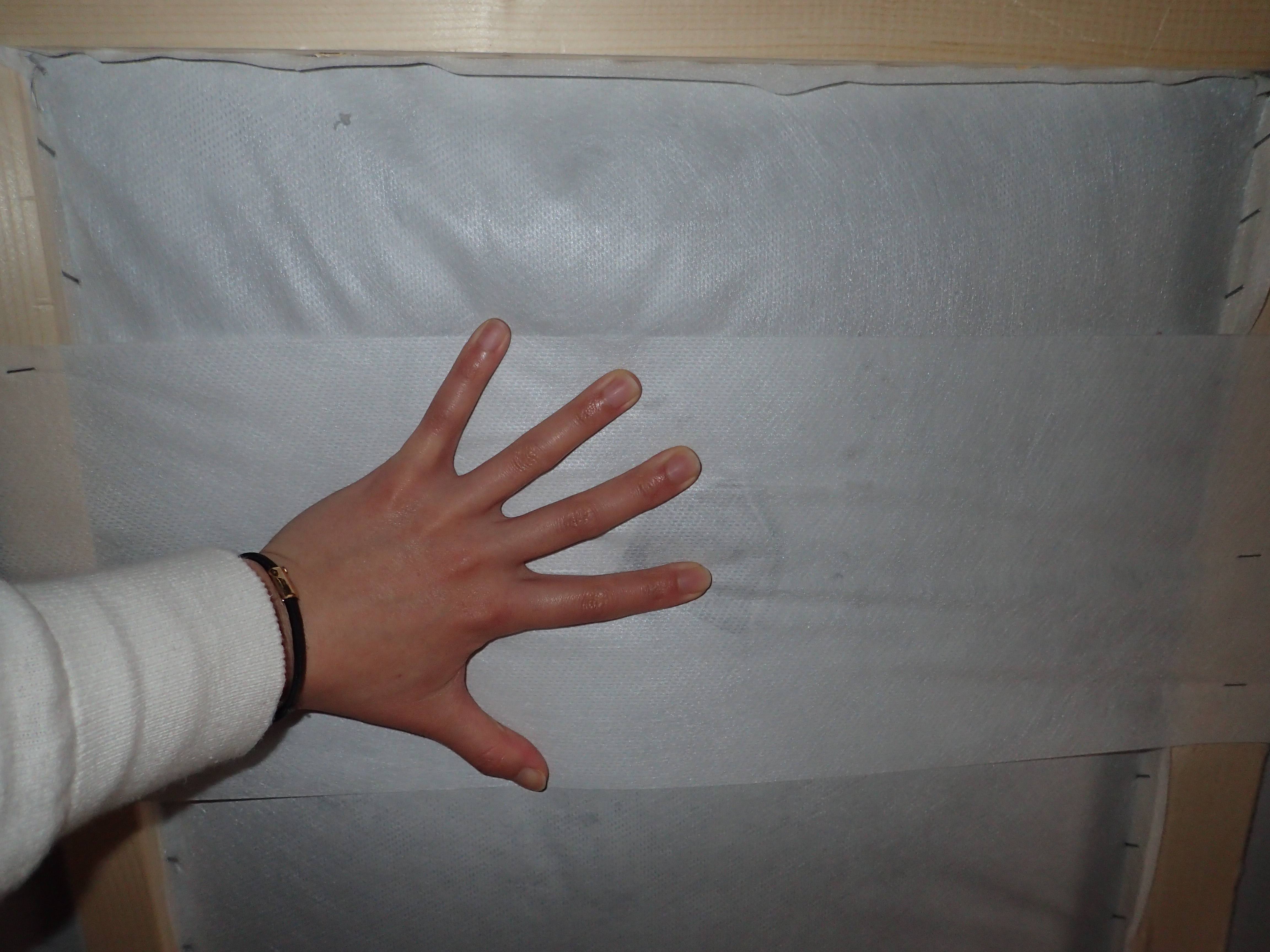 壁に専用のシートを貼り、穴を開けてノズルで吹き込んでいきます