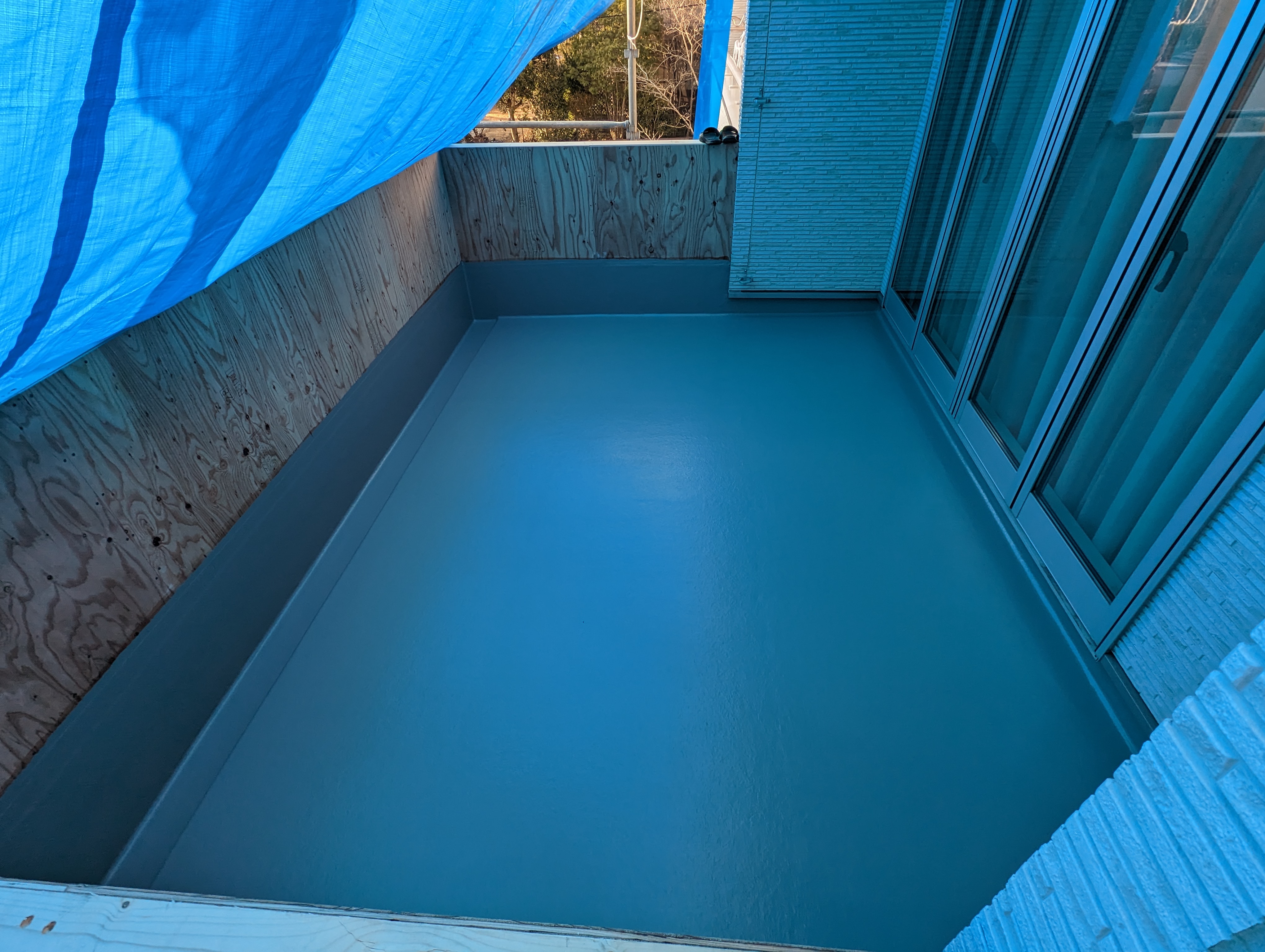 元からこんなに広いバルコニーだったような気がするくらい自然な仕上りのFRP防水![]()