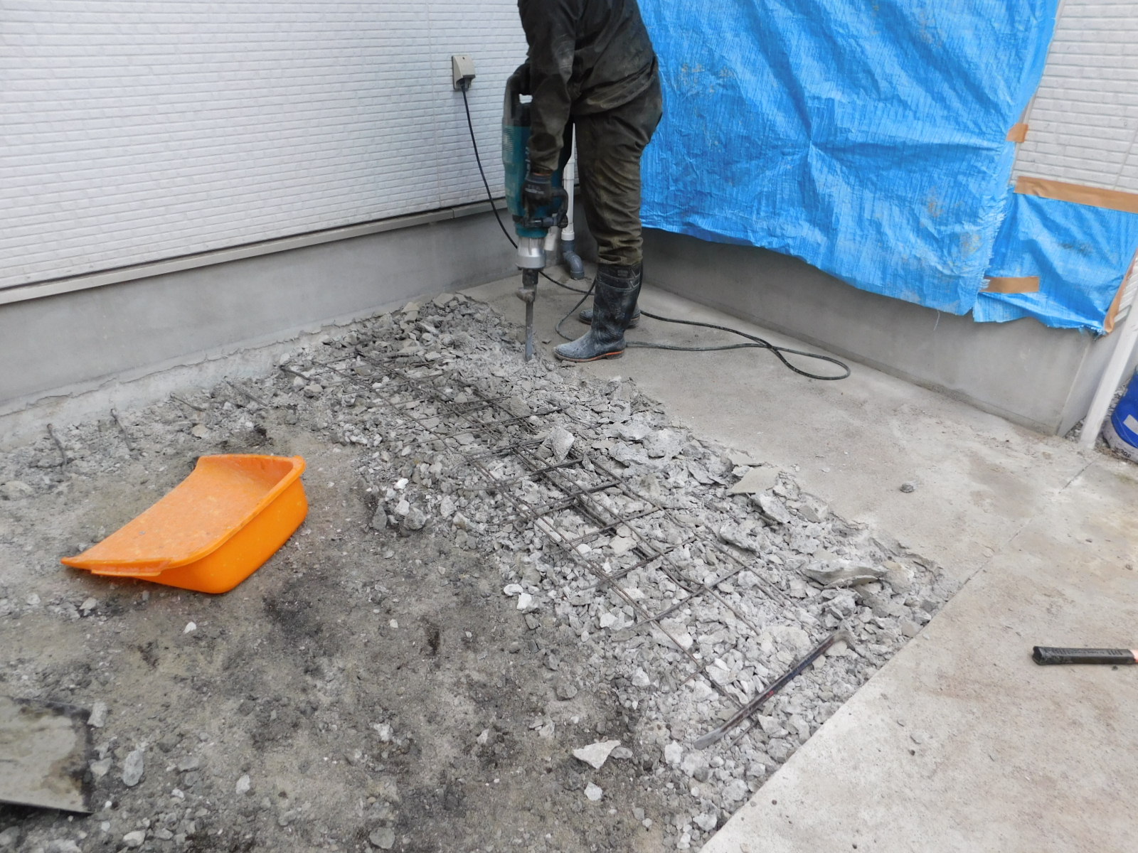 建築確認が下りたので、さっそくウッドデッキの撤去と土間コンクリートの解体工事を着工しました![]()