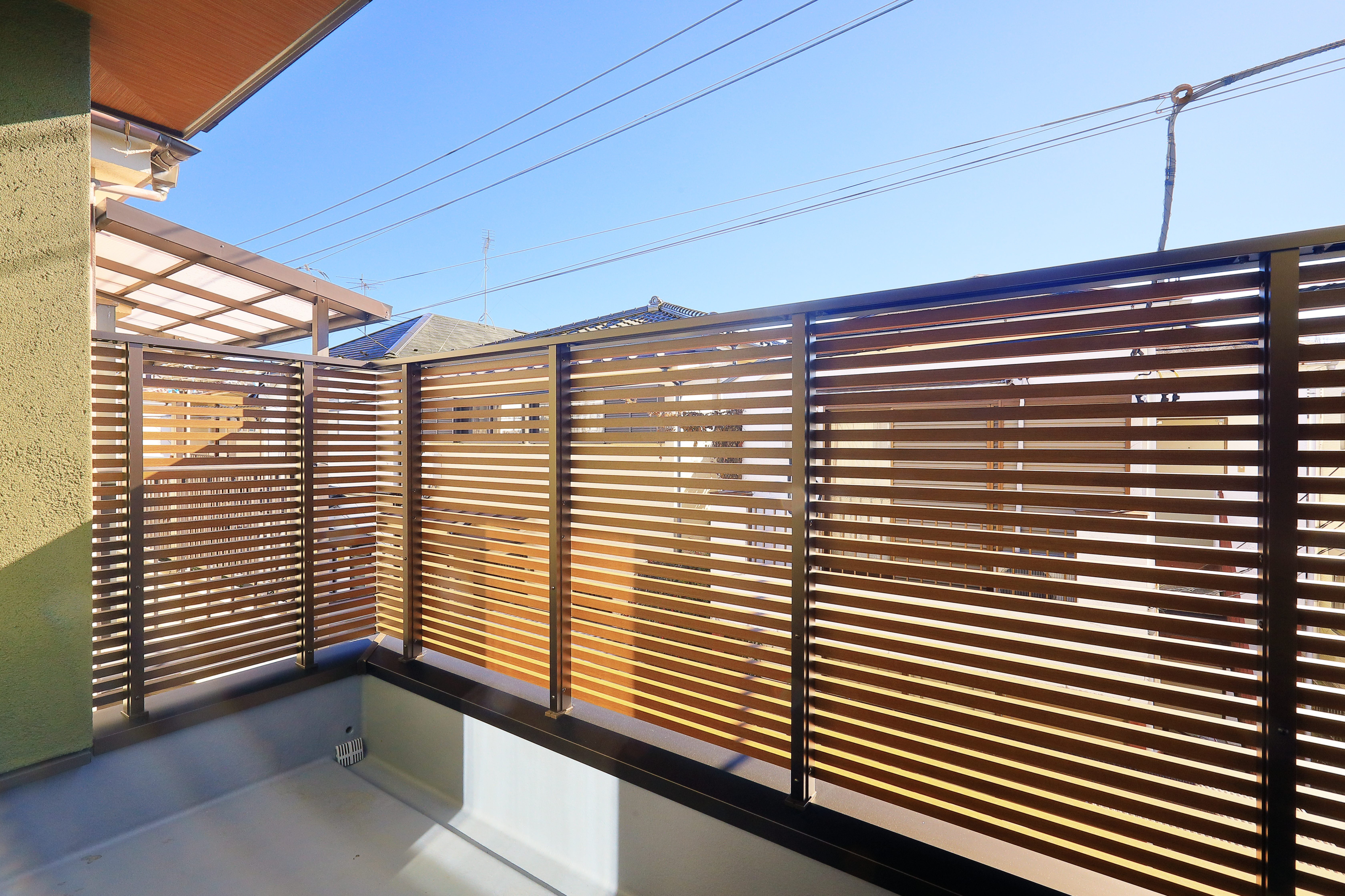 広めのルーフバルコニーにはオシャレな目隠しフェンスを設置してプライバシーに配慮しました。