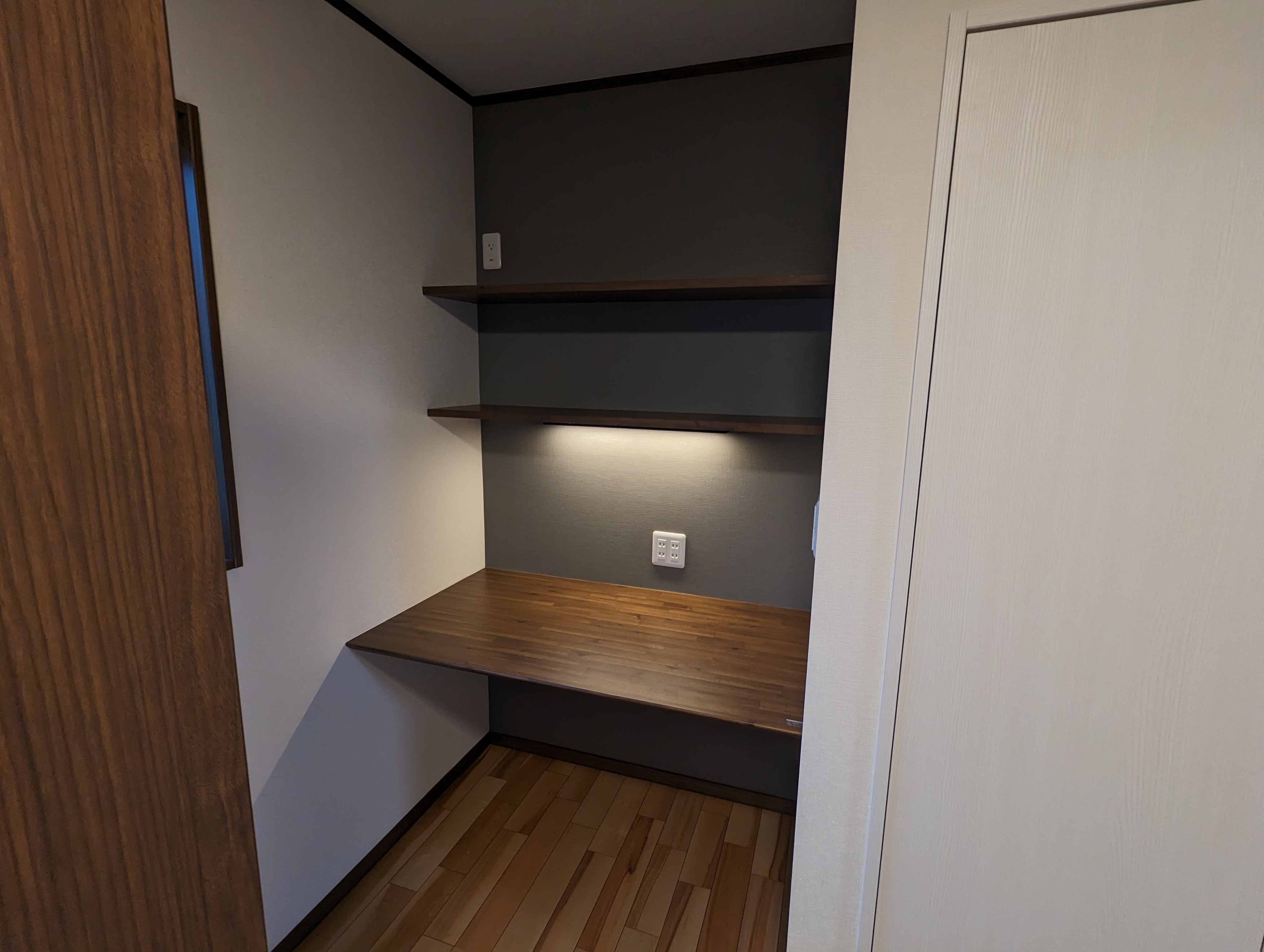 手元灯を棚の下に設けたのでスタイリッシュな雰囲気で机の上もスッキリ使って頂けます![]()