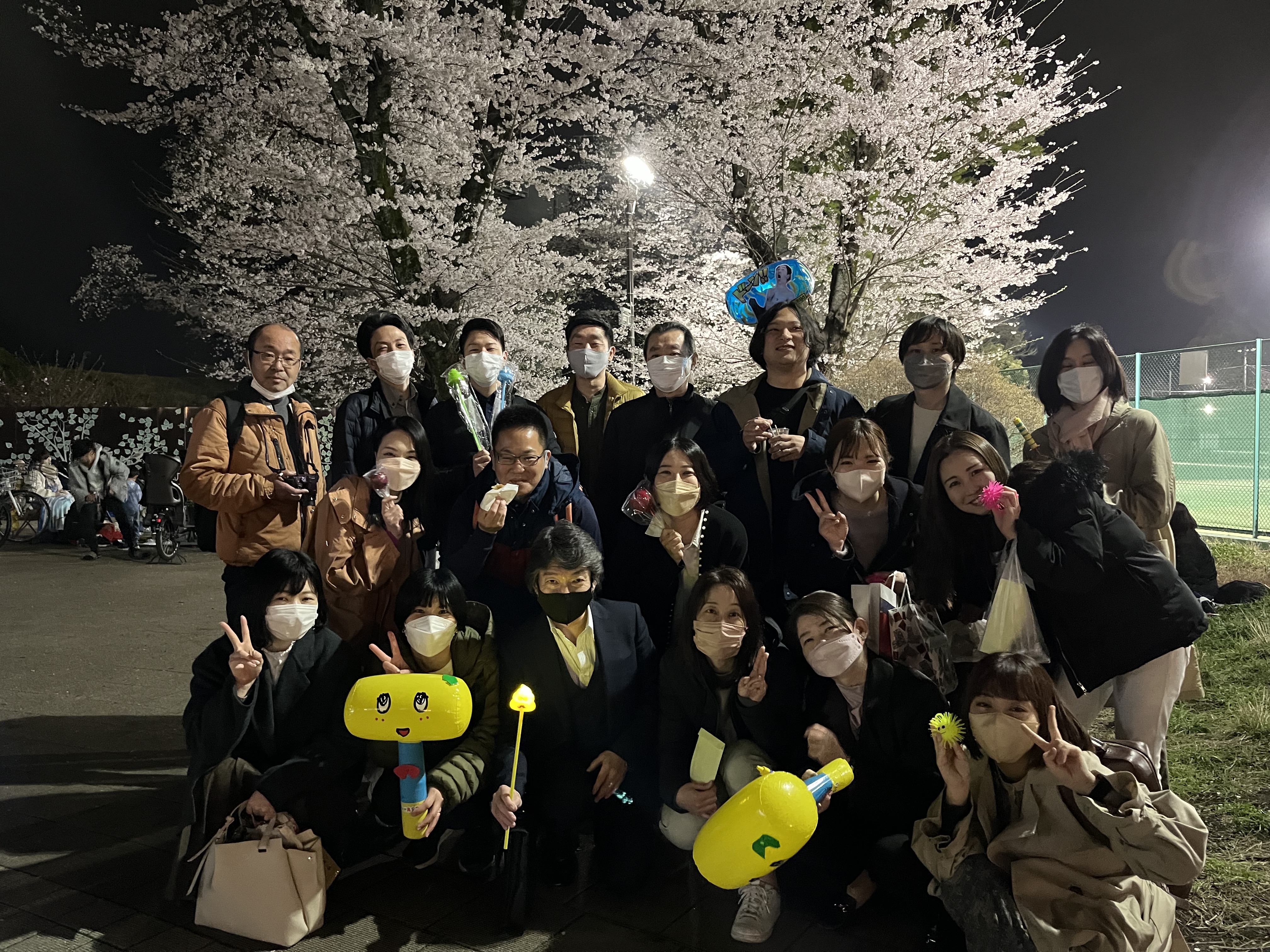 今週月曜日の夜、エンラージスタッフ全員で桜が満開の富士森公園に行ってきました🌸