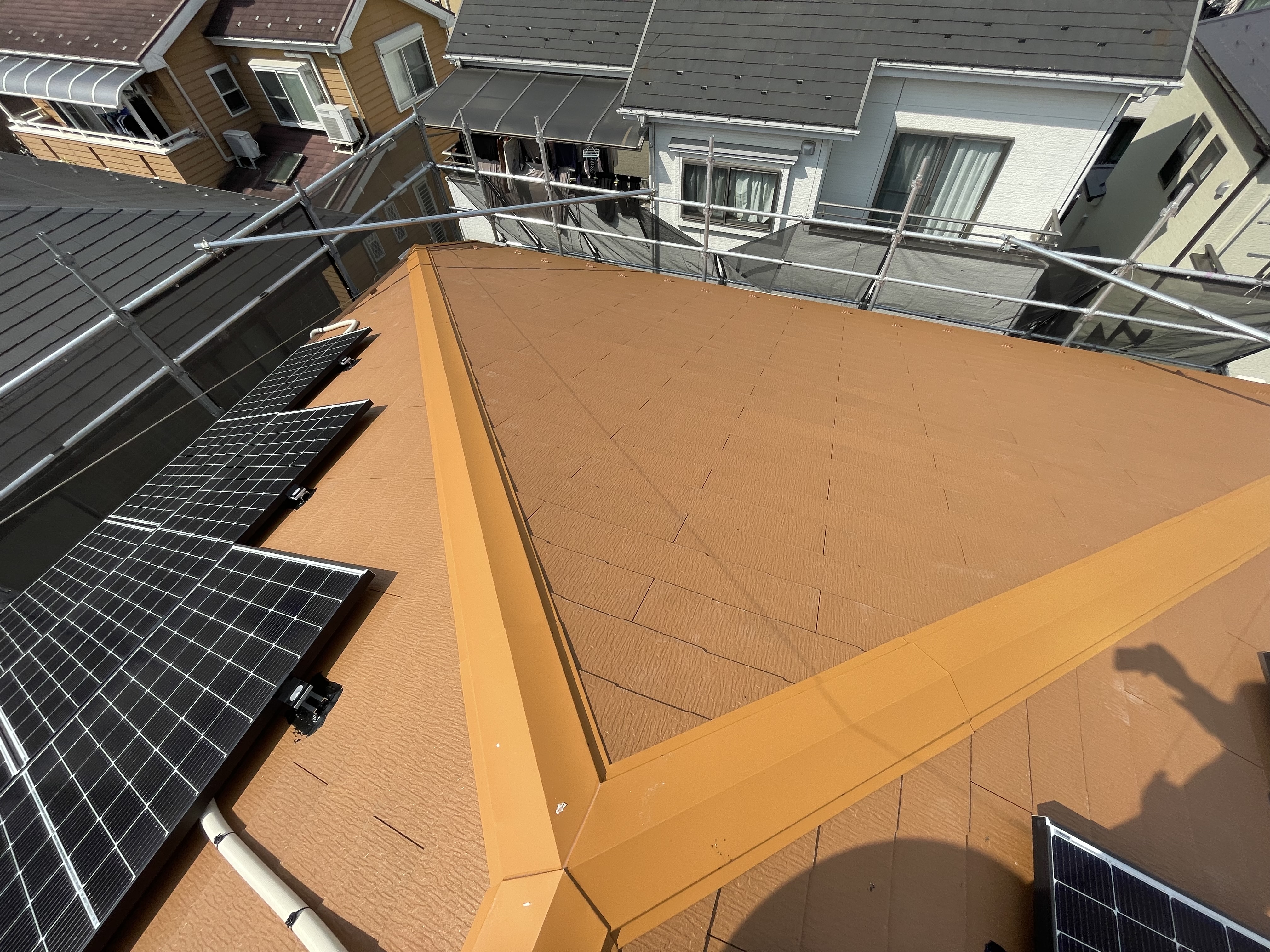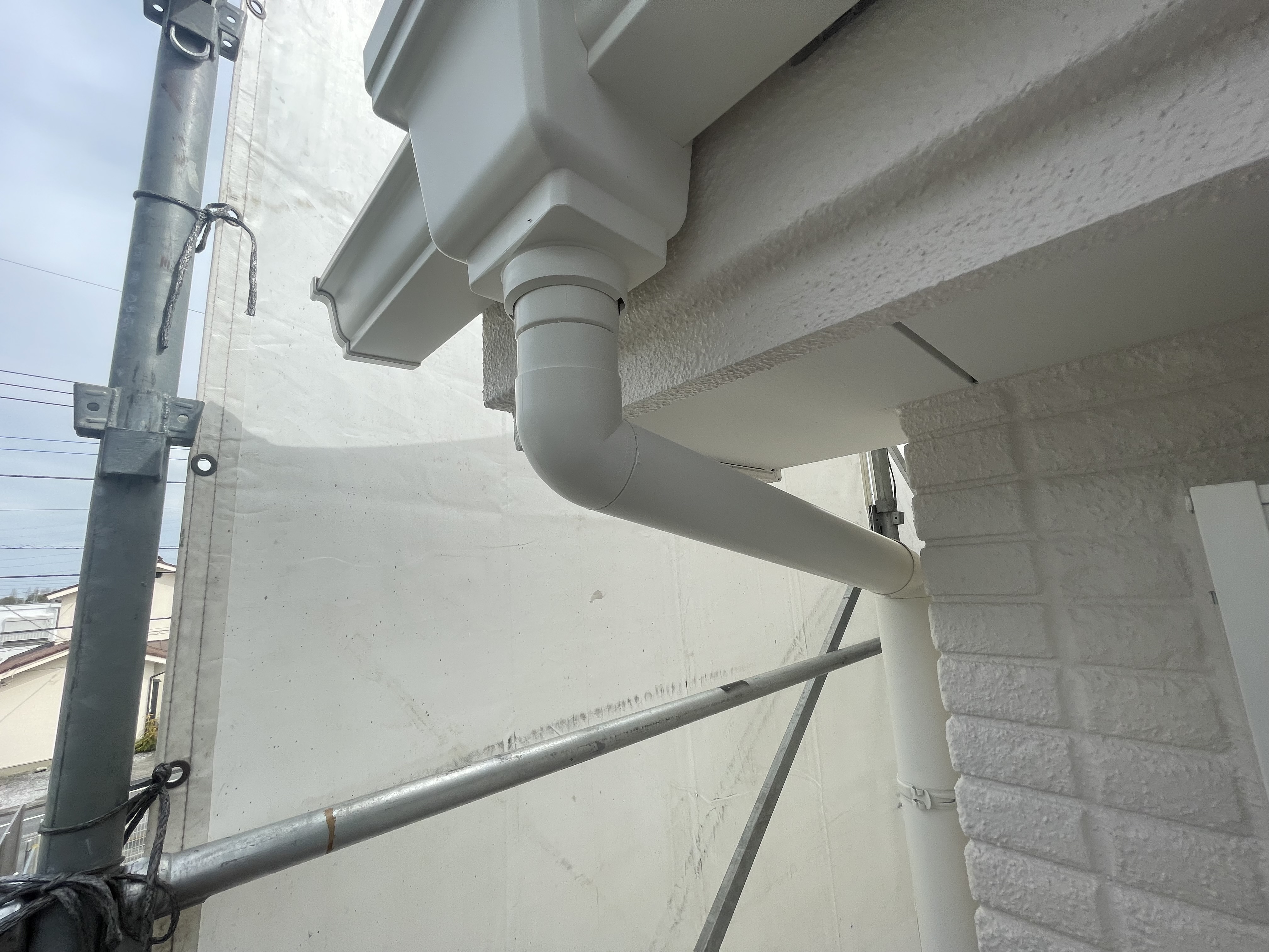 外壁塗装と雨樋の交換も終わったので、今週には足場が外せそうです。